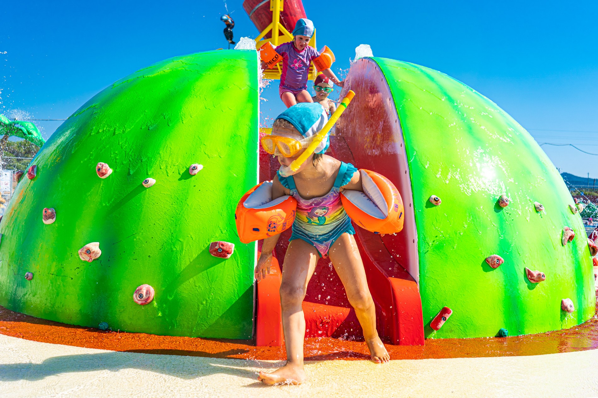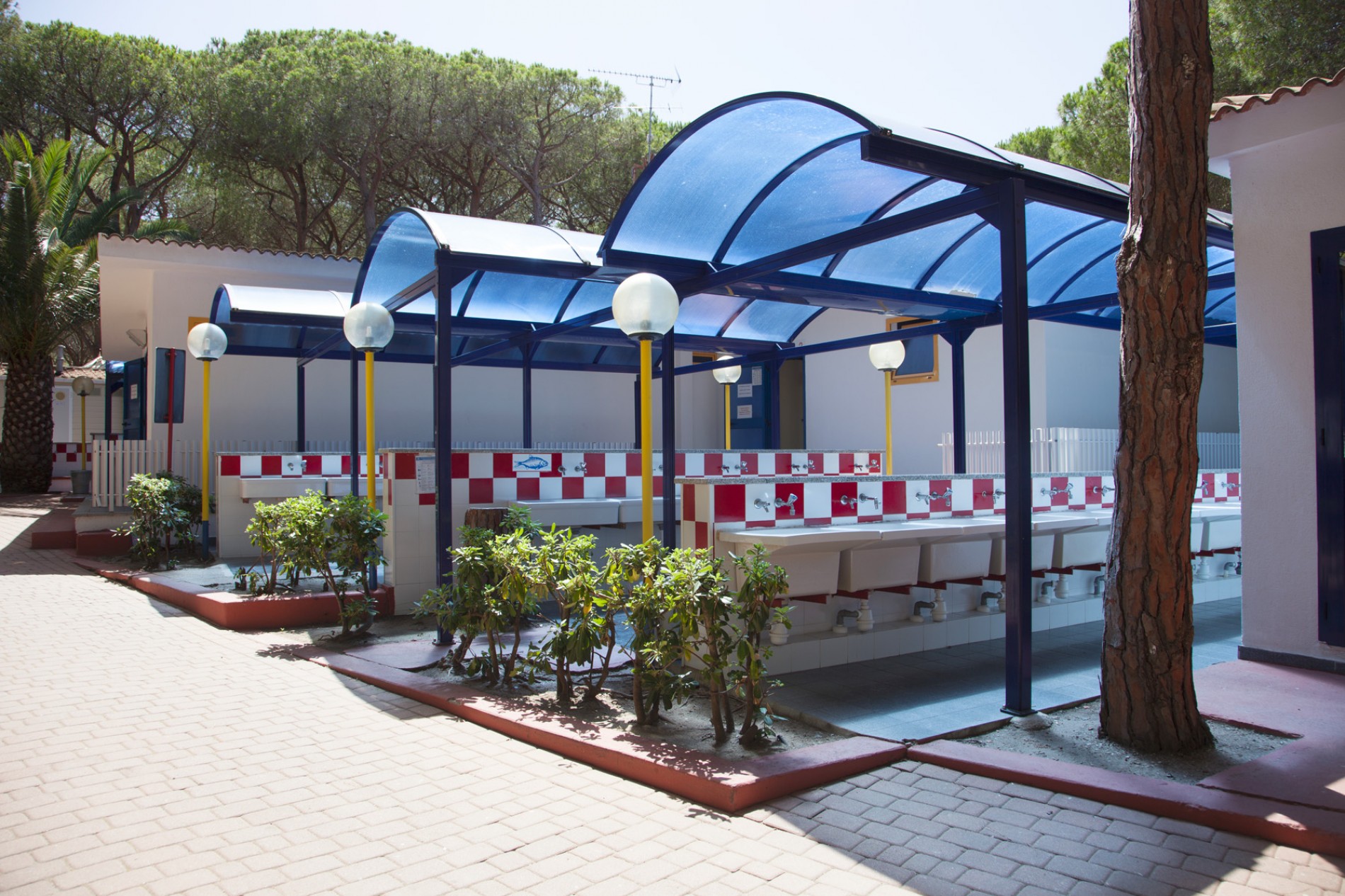 Hunde sind im Restaurant im Außenbereich und in allen Gemeinschaftsbereichen des Campingplatzes an der Leine erlaubt. Hunde sind im Wasserpark und auf dem Markt nicht erlaubt.