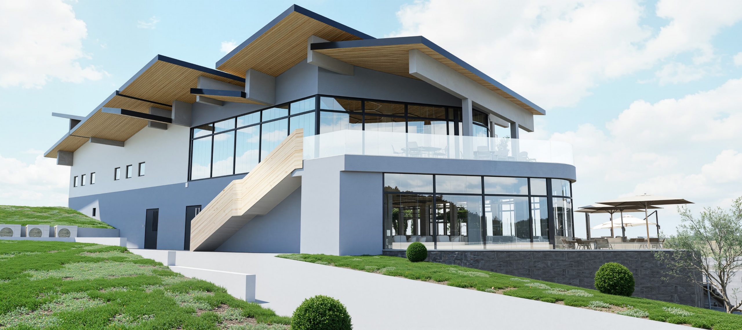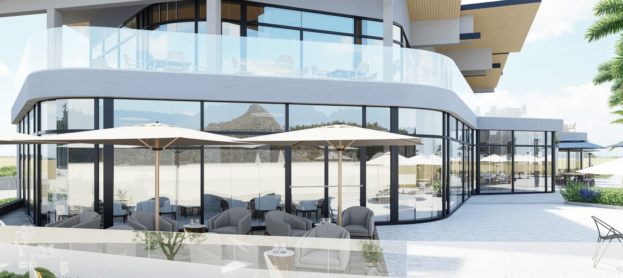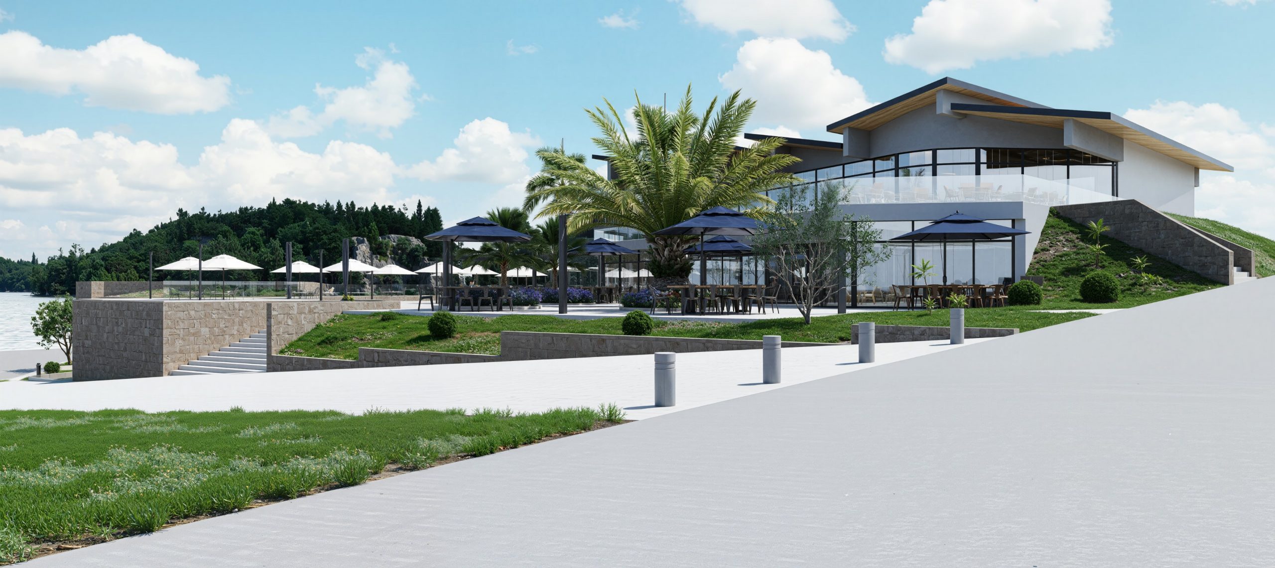 Das neue Restaurant Poljana ist als modernes, barrierefreies Gebäude auf zwei Ebenen konzipiert. Im Erdgeschoss befinden sich eine Bar und ein Selbstbedienungsrestaurant mit Verteilerstrecke und Küche, während im ersten Stock das À-la-carte-Restaurant untergebracht ist; beide Ebenen haben große Außenterrassen.