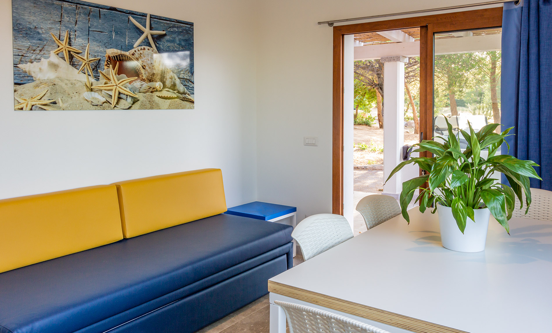 Die Bungalow Family Premium sind brandneue gemauerte Unterkünfte, Ihr Urlaub wird unvergesslich sein! Die Wohnung besteht aus zwei Doppelschlafzimmern und einem Badezimmer mit Dusche, Waschbecken, Bidet und WC. Mit Platz für 6 Personen ist es die ideale Unterkunft für Familien oder befreundete Paare, die das Beste aus ihrem Urlaub machen wollen, ohne auf ihre Privatsphäre und Entspannung zu verzichten. Der Wohnbereich hat eine offene Küche, einen Tisch mit Stühlen und ein Schlafsofa. Eine große Außenterrasse ist Ihr privater Ort zum Entspannen oder Essen. Besteck, Geschirr, Decken und Kissen sind inbegriffen. Klimaanlage gegen Aufpreis verfügbar.