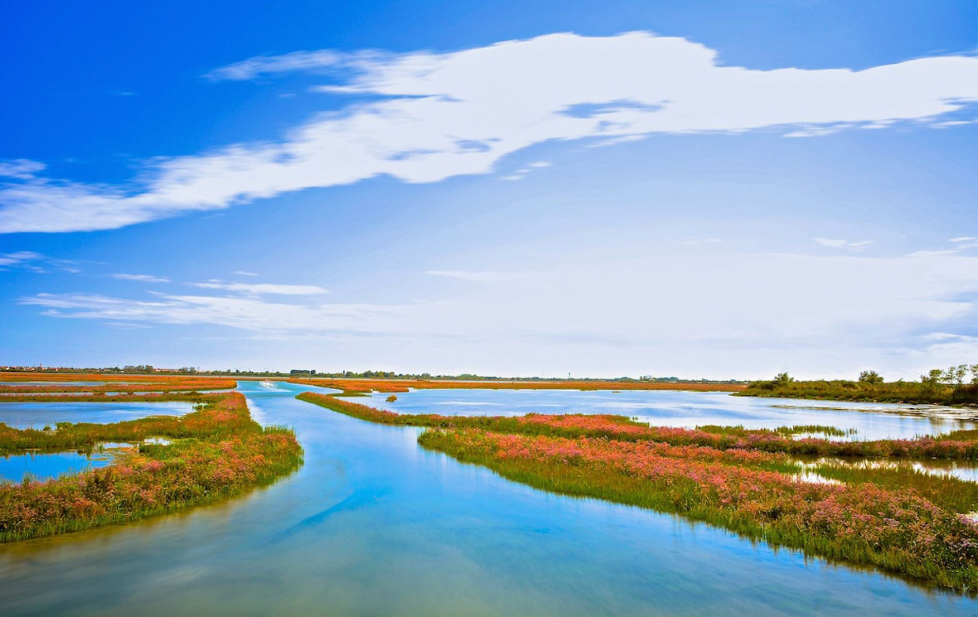 Es ist eine Lagune mit langen Ufern, die sich zwischen lebendigen, fließenden Gewässern und ruhigen, fruchtbaren Gewässern schlängeln, mit verstreuten oder zu malerischen Siedlungen zusammengefassten Behausungen. Es ist die Lagune, in der die natürlichen Geräusche und Düfte den Besucher unverändert erreichen, wie vor tausend Jahren.
