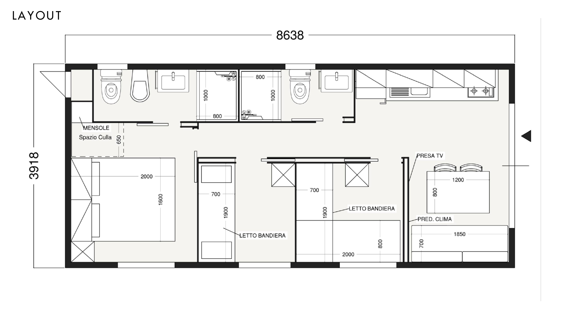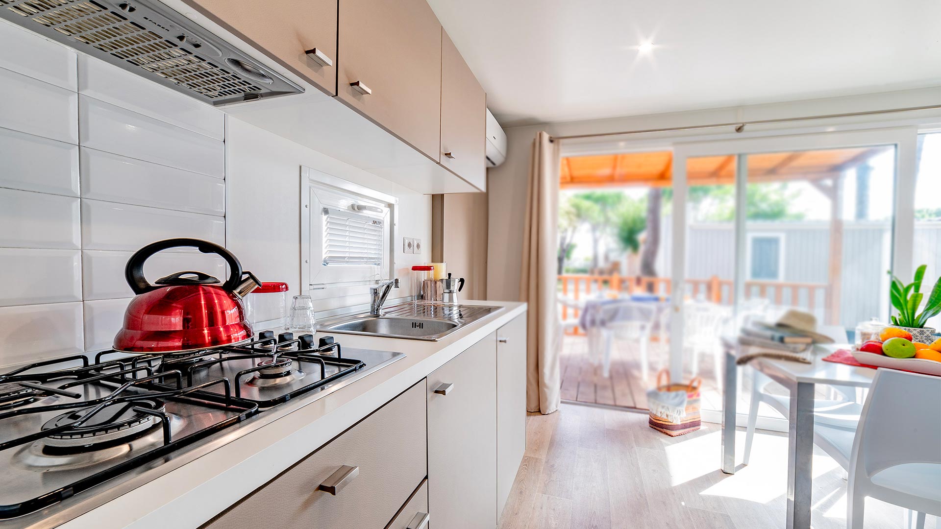 Das neue Baia Revolution Plus mit seinen 34 Quadratmetern ist ein Mobilheim der neuen Generation. Es ist die ideale Lösung für große Familien mit bis zu 6 Personen.