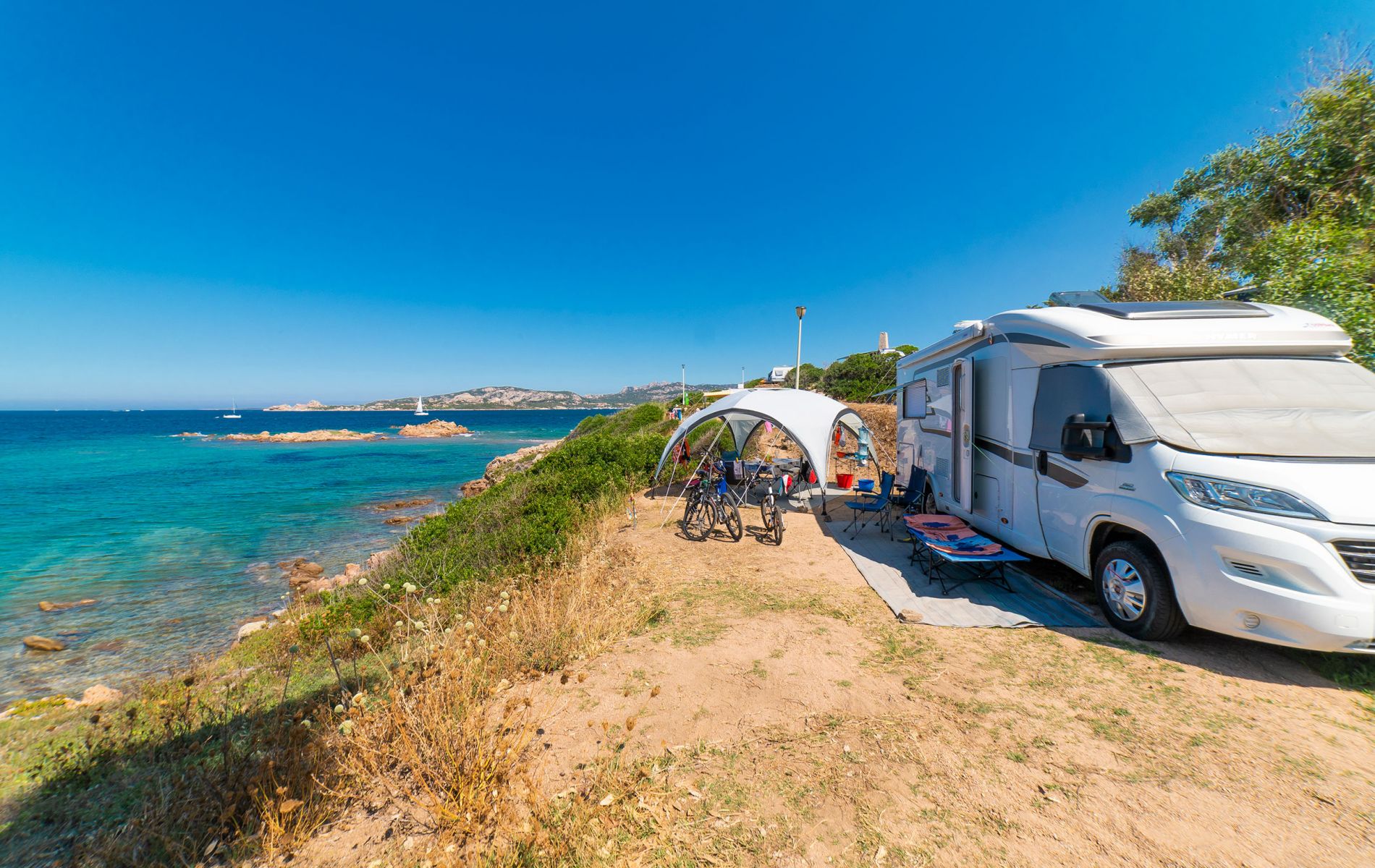 Die Stellplätze vom Typ ‚PARADISE‘ haben eine privilegierte Lage in der Nähe des Meeres und verfügen über große und komfortable Stellplätze. Aufgrund ihrer Lage, einige sogar direkt am Strand, bieten sie einen Aufenthalt inmitten der natürlichen Schönheit der Gegend und einen einzigartigen Blick auf das Meer des Golfs von Arzachena. Sie sind so konzipiert, dass sie maximalen Komfort bieten. Sie sind mit 10 Ampere Strom ausgestattet und verfügen auf Wunsch über ein eigenes Bad. Sie können bis zu 6 Personen beherbergen. Einige haben einen Wasseranschluss direkt auf dem Stellplatz. Nehmen Sie Ihren vierbeinigen Freund mit: einige Einheiten dieser Art sind haustierfreundlich.