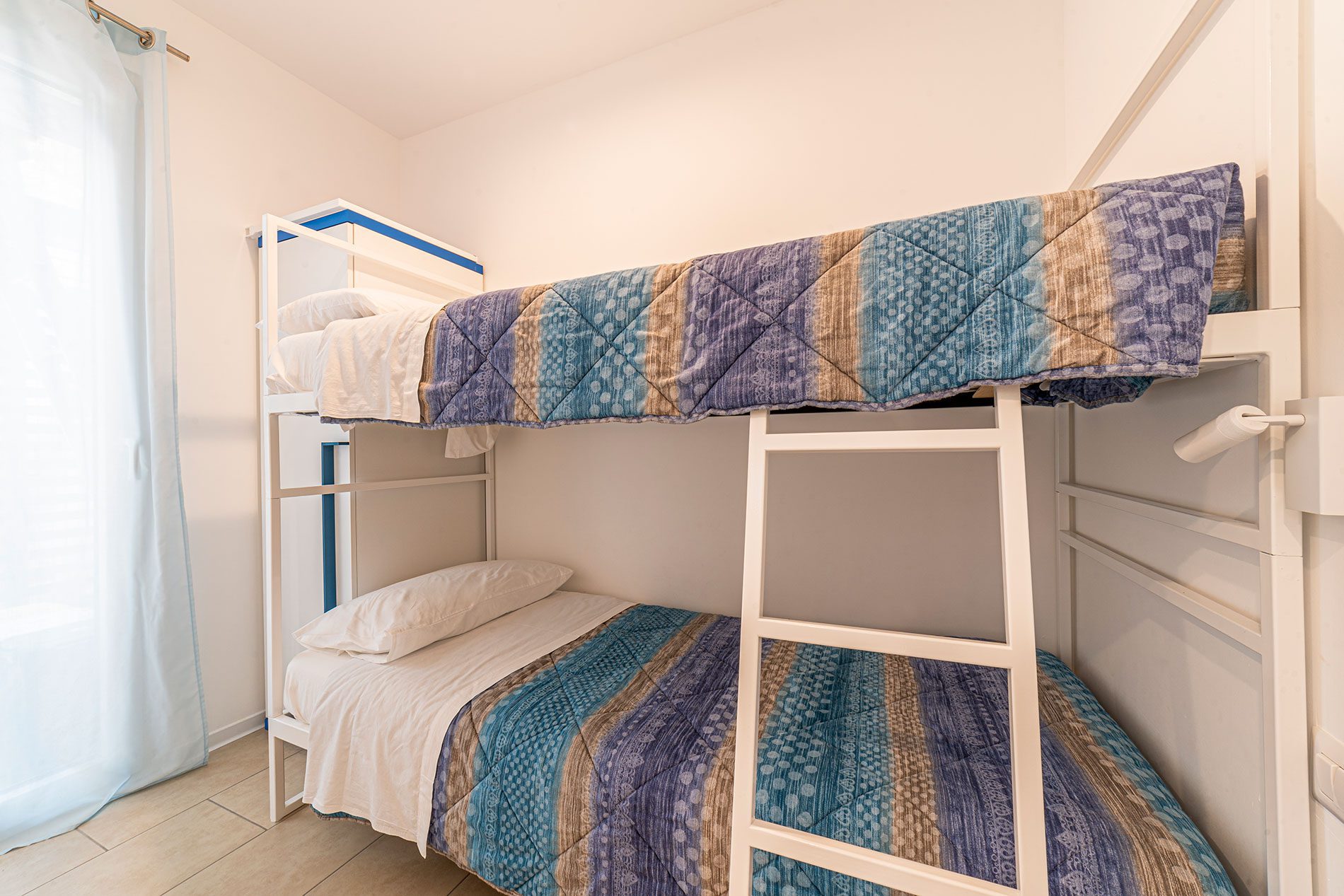 Diese gemauerte Struktur von ca. 24 m² kann maximal 4 Erwachsene beherbergen. Es besteht aus einem Schlafbereich mit 2 Zimmern, eines mit einem Doppelbett und eines mit einem Etagenbett. Ausgestattete Küchenzeile mit Kühlschrank, Induktionskochfeld, Spüle, Töpfen und Geschirr und, um die Unterkunft zu vervollständigen, ein Badezimmer mit WC, Dusche und Waschbecken. Der Wohnbereich befindet sich draußen auf der überdachten Veranda, die mit Tisch, Stühlen und Sofa ausgestattet ist.