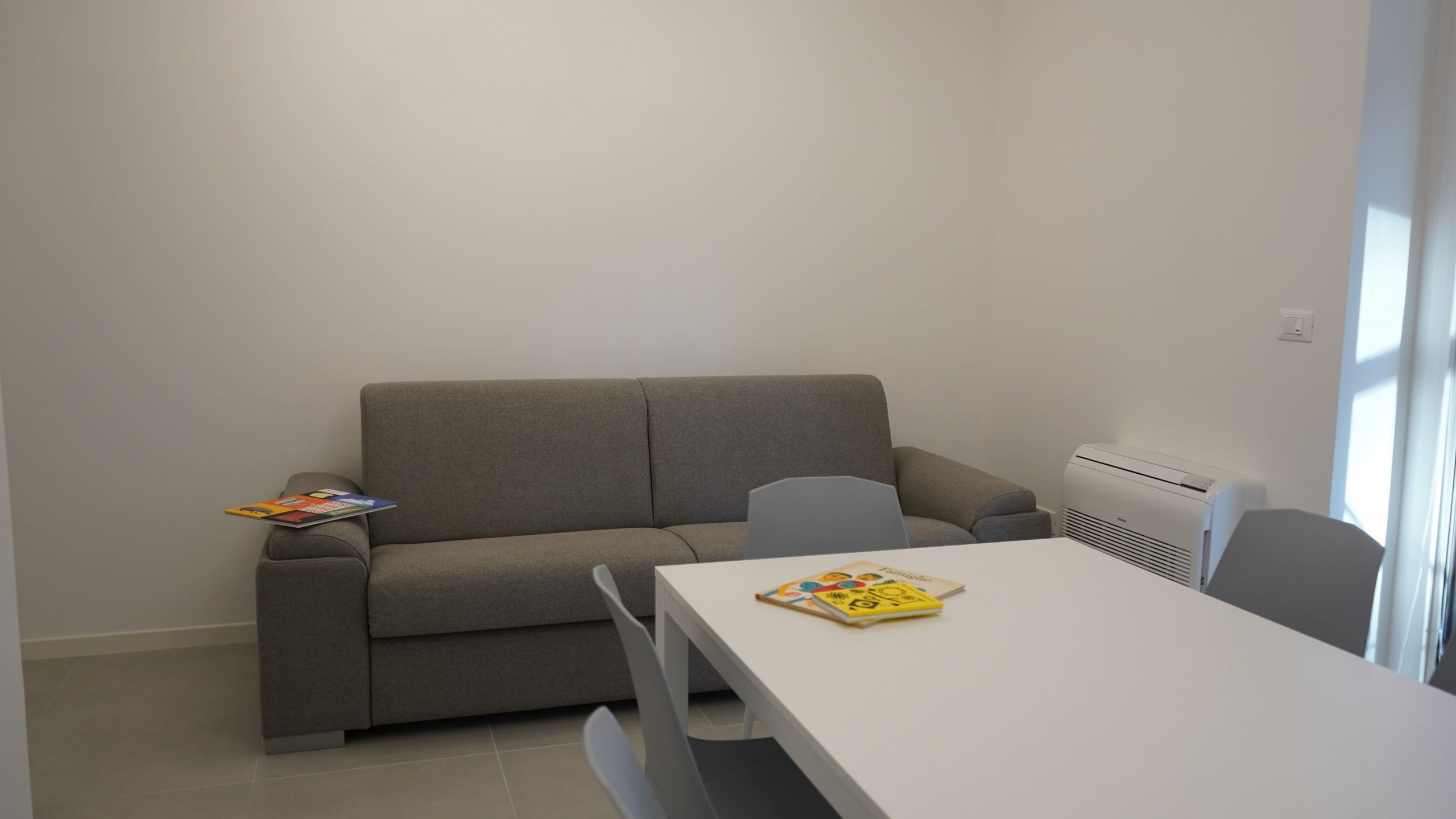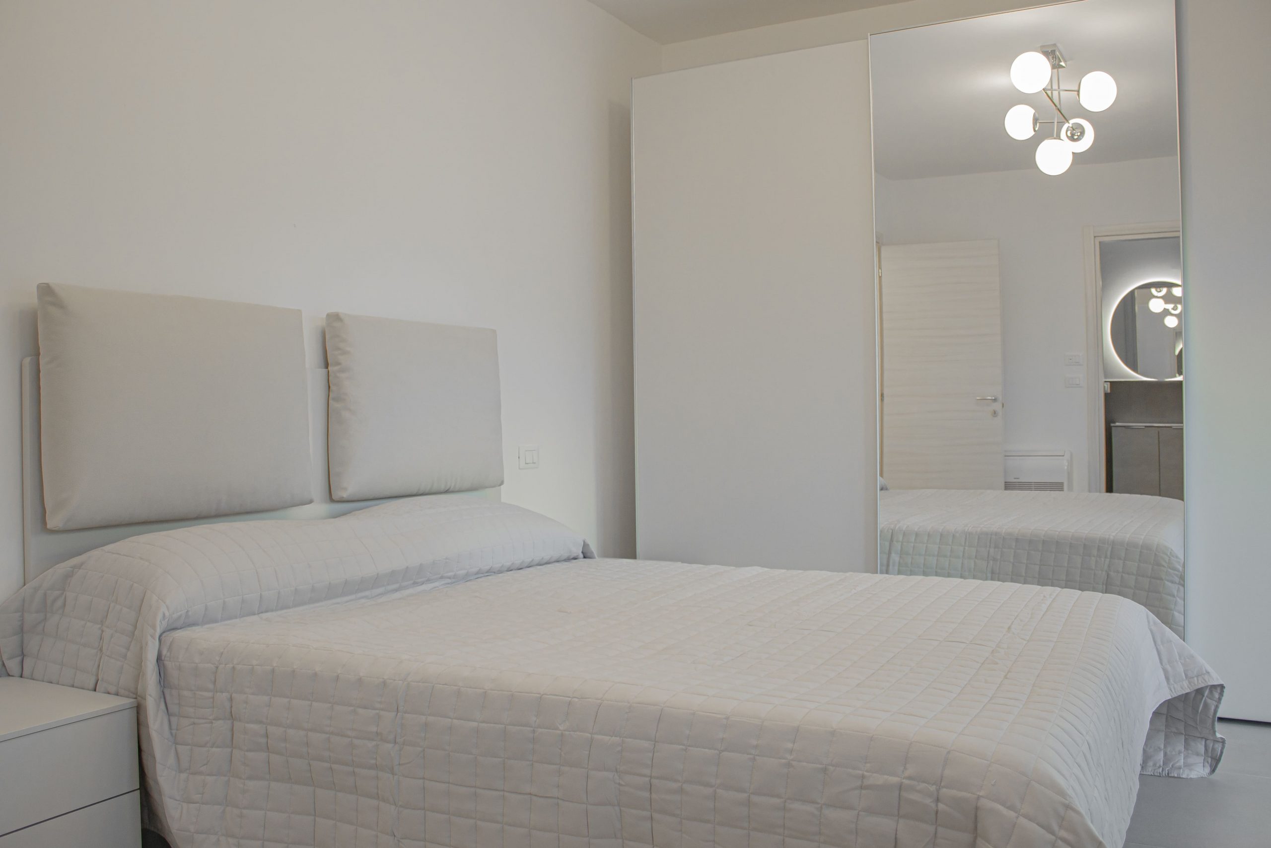 Sie hat eine Fläche von etwa 85 m². Im Inneren gibt es ein großes Wohnzimmer mit einem Doppelschlafsofa, eine Küche, die mit allem nützlichen Zubehör für einen komfortablen Aufenthalt ausgestattet ist, wie Herd, Geschirrspüler, Multifunktionsbackofen, Kühlschrank mit Gefrierfach, Besteck und Zubehör. Zwei Bäder mit Dusche, ein Schlafzimmer mit Doppelbett (mit eigenem Bad) und ein Schlafzimmer mit zwei Einzelbetten vervollständigen die Wohnung. Sie ist die ideale Lösung, um maximal 6 Personen zu beherbergen. Ein Fernseher, eine Klimaanlage und eine Waschmaschine sind in der Wohnung vorhanden. Es gibt 2 Balkone, die auf der einen Seite vom Wohnzimmer und auf der anderen Seite vom Hauptschlafzimmer aus zugänglich sind. Sie erreichen die 1. Etage mit dem Aufzug vom Eingang aus. Die Wohnung befindet sich am Eingang zum Camping Village Mare Pineta.