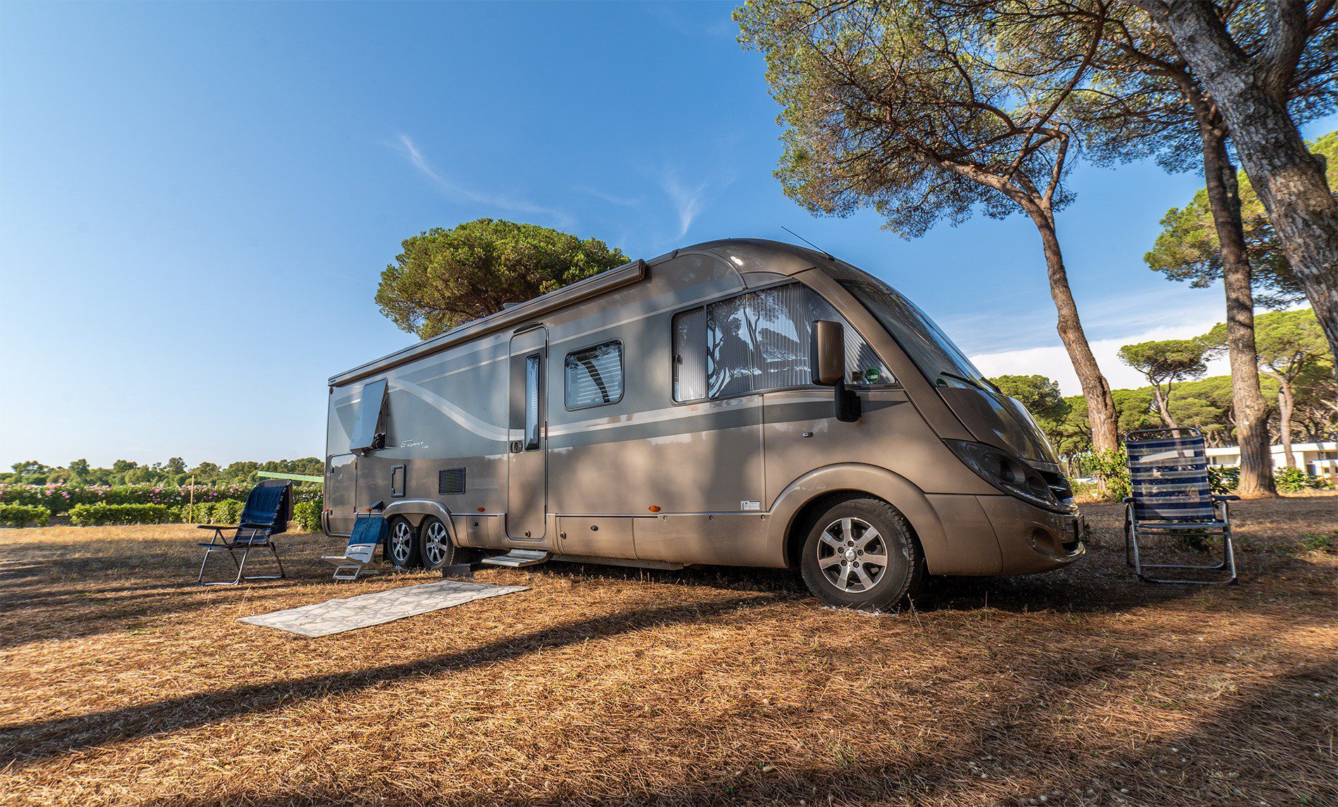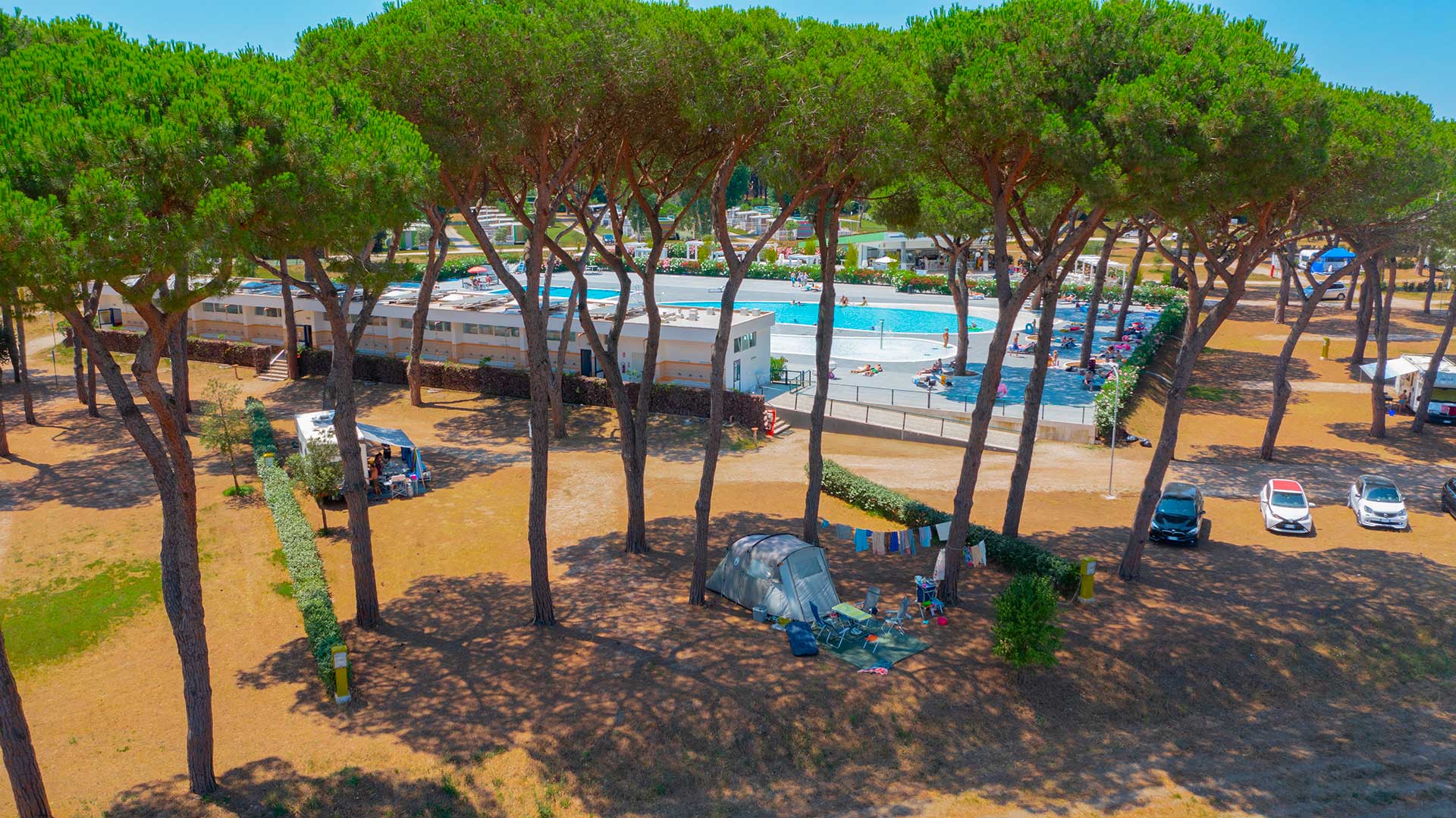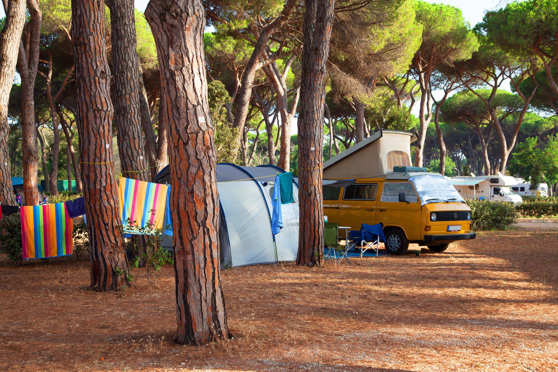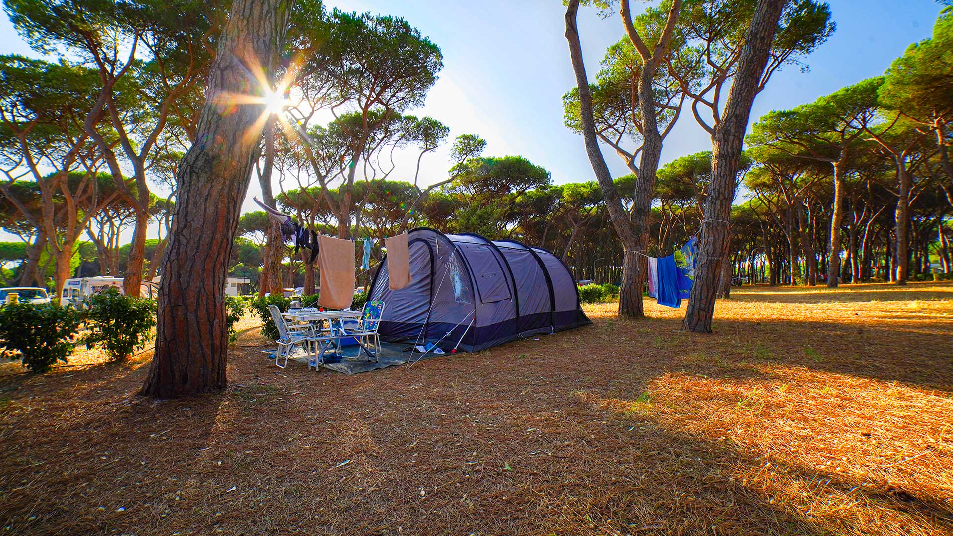 Zwischen den Stellplätzensind die kleineren für zwei Personen ausgelegt, die in der Regel zu Fuß, mit dem Fahrrad oder mit dem Motorrad unterwegs sind. Es gibt auch mehrere größere Optionen, darunter solche für Wohnmobile und Wohnwagen, die bis zu sechs Gäste aufnehmen können.