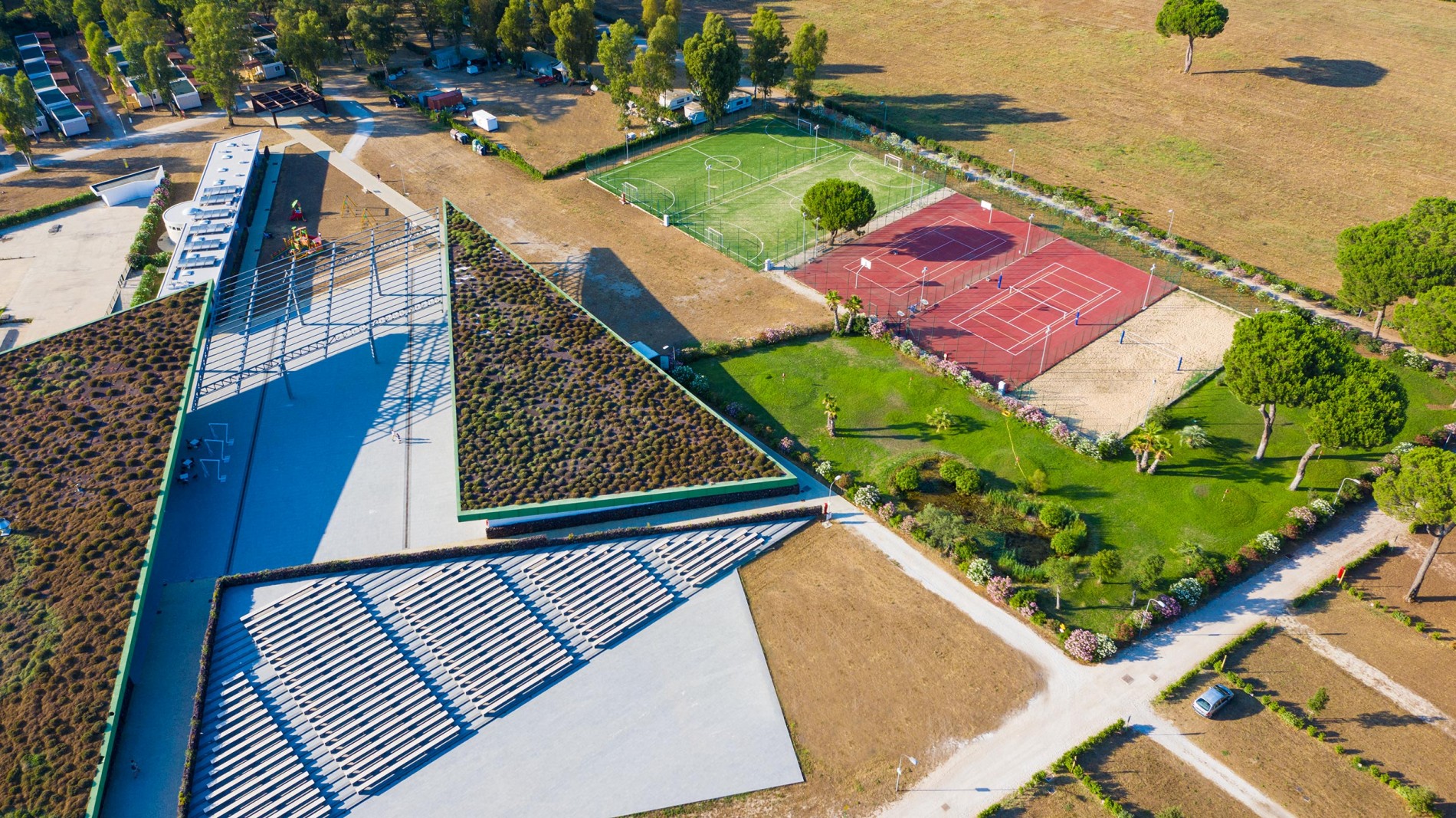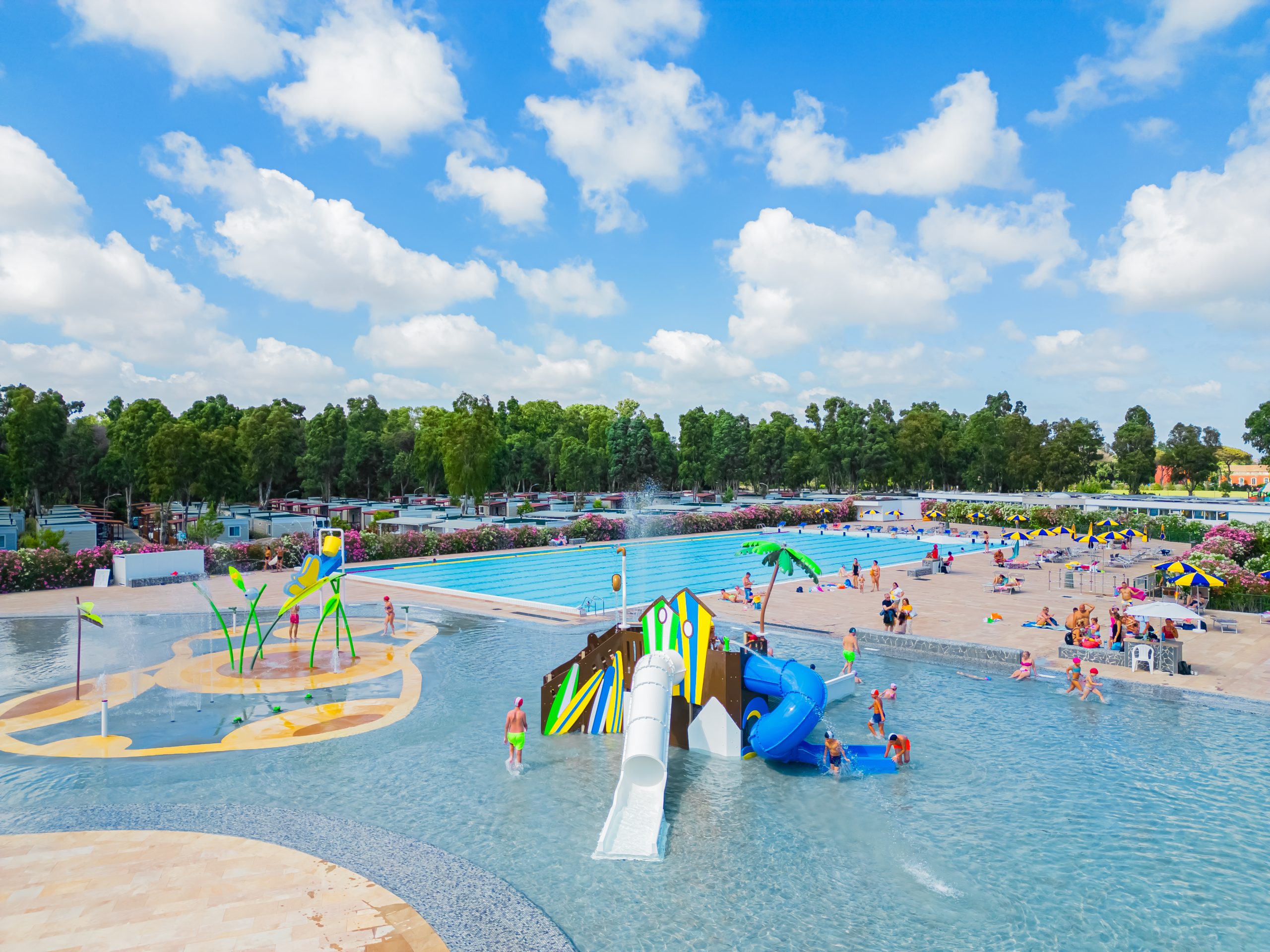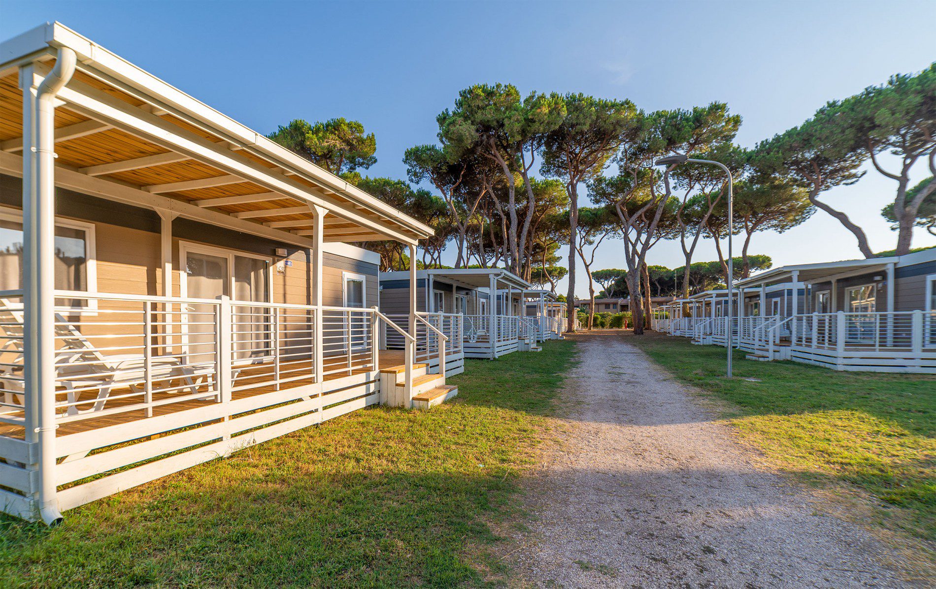 Das Dorf bietet vor allem eine große Auswahl an Mobilheimen geräumige und komfortable Mobilheime, von solchen für Paare bis hin zu solchen für große Familien. Jedes ist mit allen notwendigen Annehmlichkeiten für einen erholsamen Urlaub ausgestattet, darunter ein Badezimmer, eine Klimaanlage und ein Fernseher.