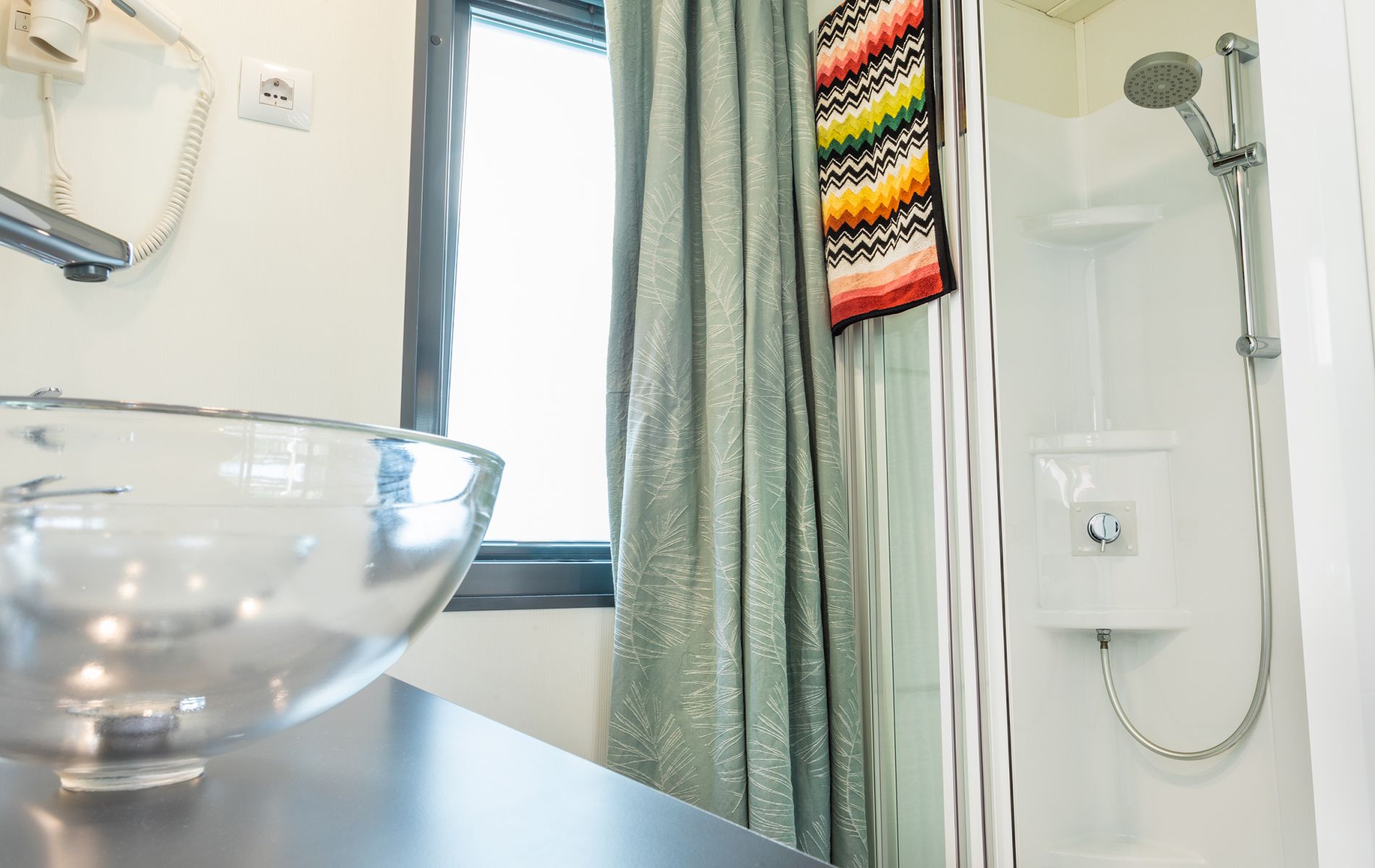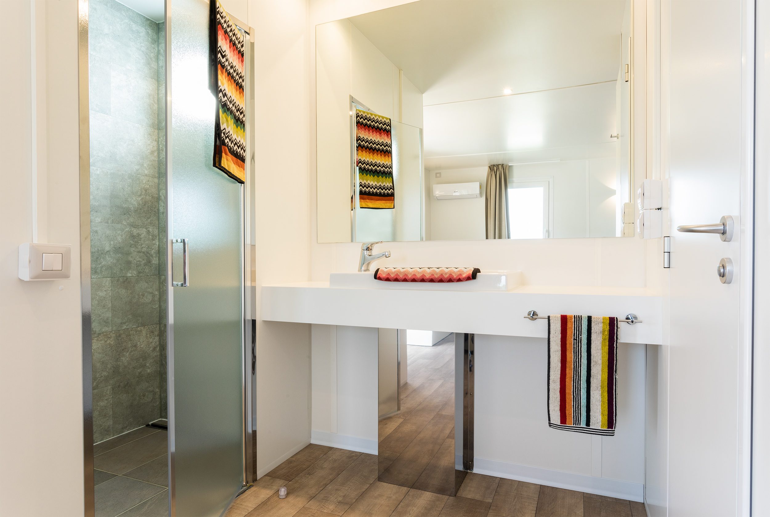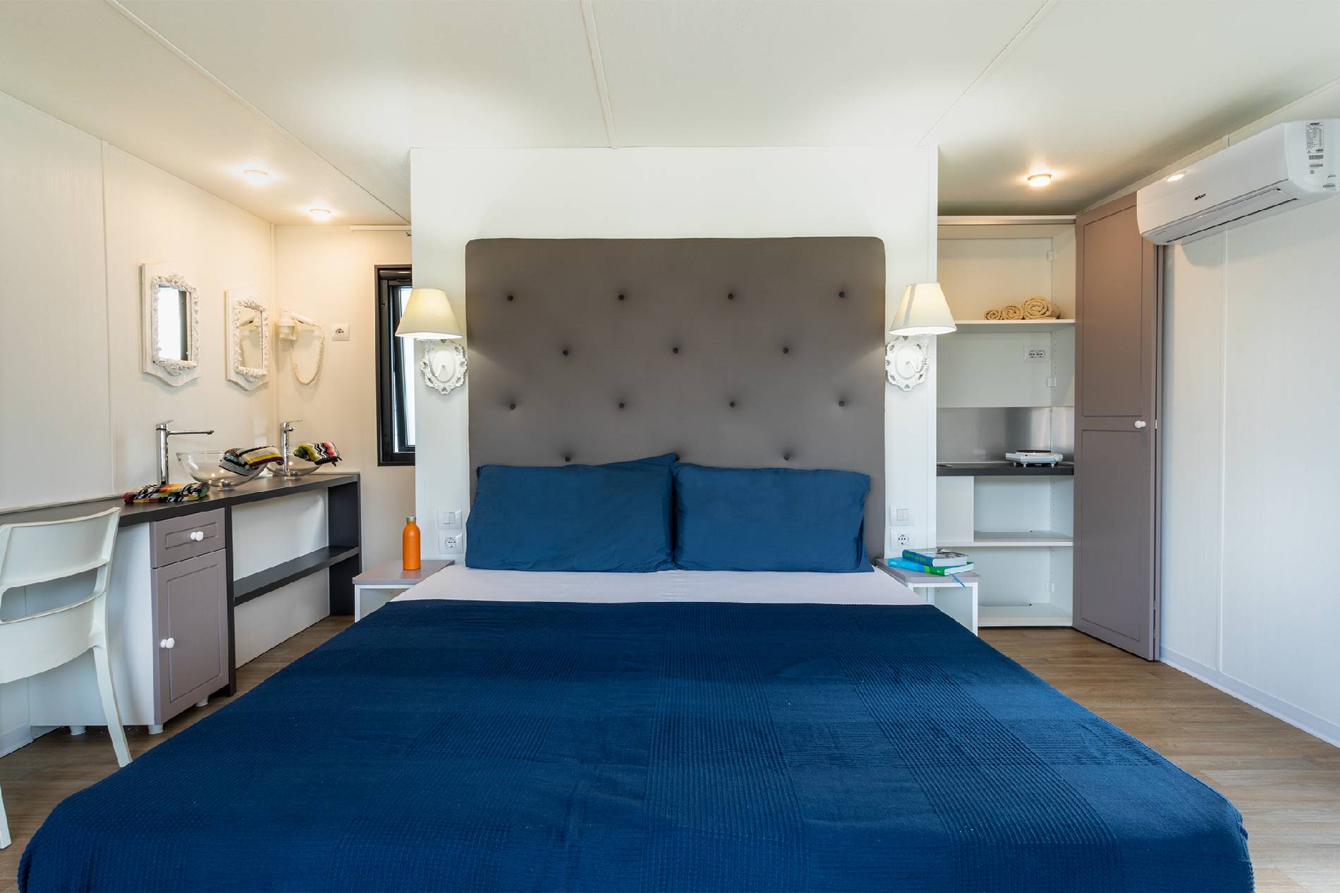 Die neue Baia Cube Suite ist ein Mobilheim mit einem Schlafzimmer, einem Doppelbett, Satellitenfernsehen und einem eigenen Badezimmer mit Dusche, Waschbecken und Toilette. Im Schlafzimmer ist eine Klimaanlage vorhanden, deren Nutzung bereits im Preis inbegriffen ist.