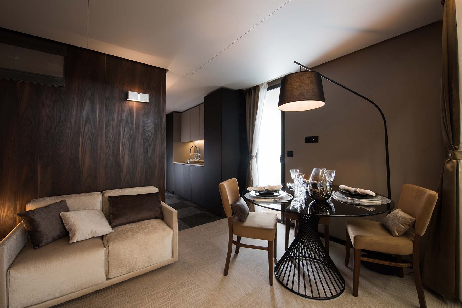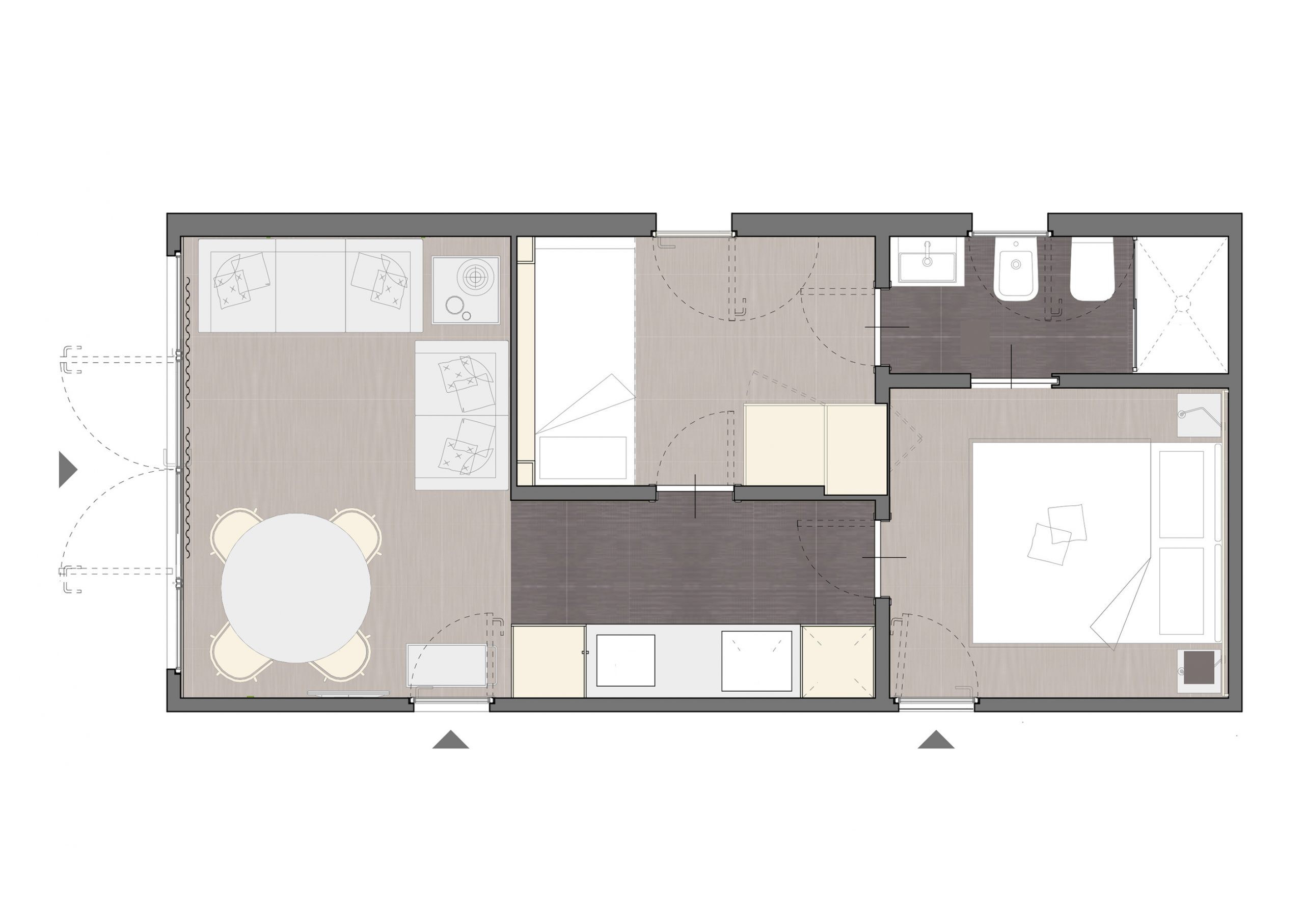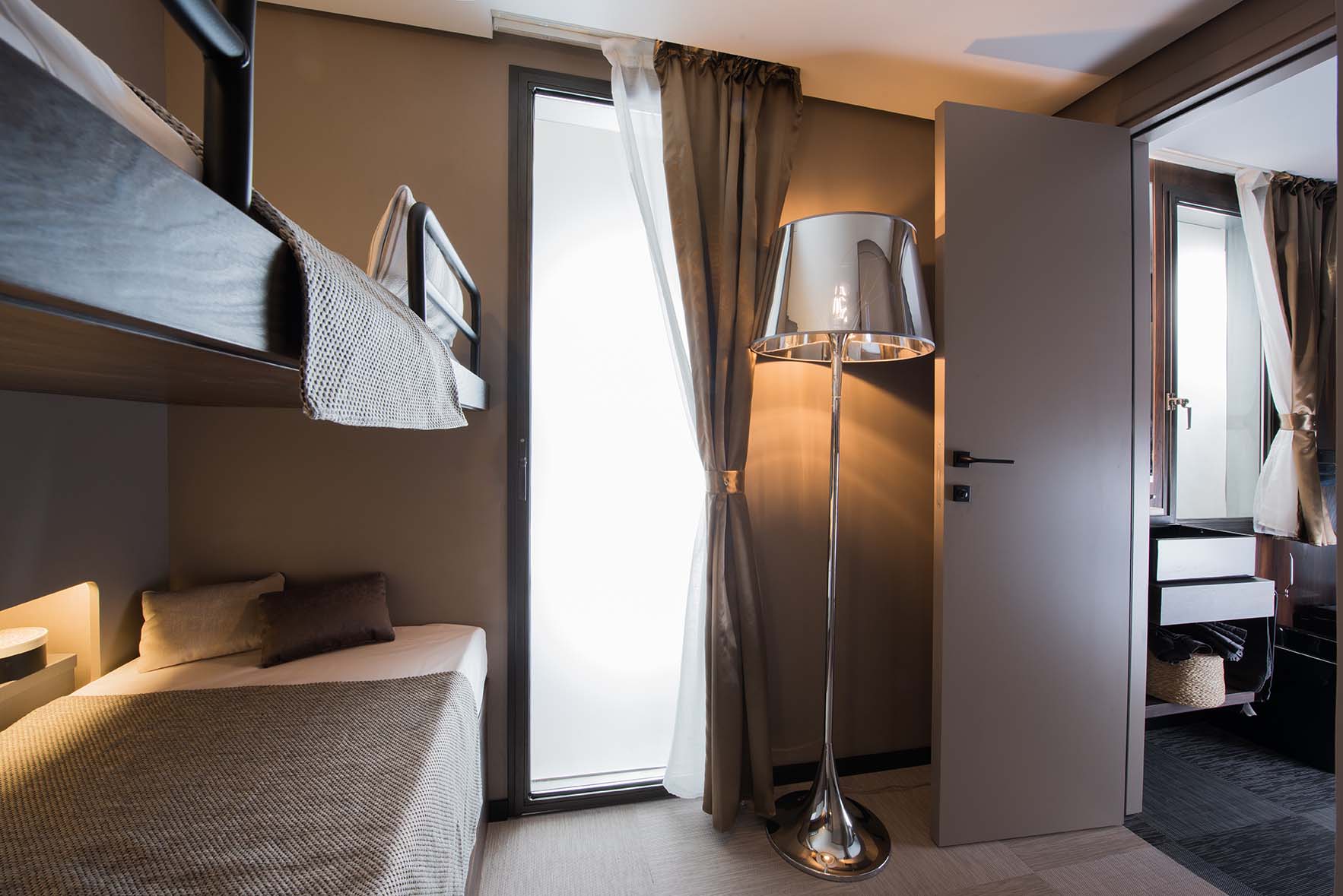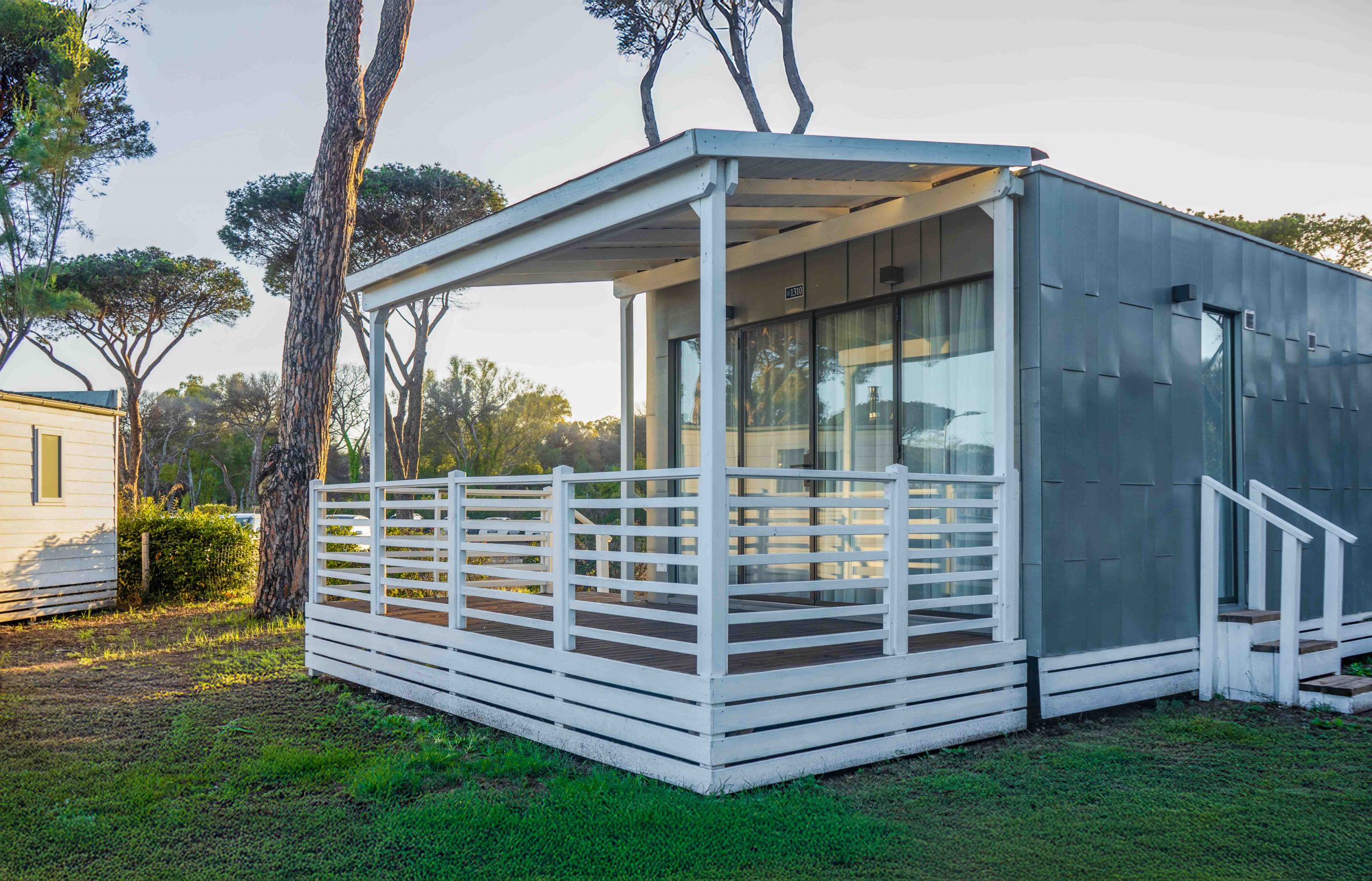 Das Gefühl von Luxus, das in ein Haus in einer natürlichen Umgebung transportiert wird: Wohn- und Gemeinschaftsräume, die sich auf das Wesentliche konzentrieren und durch geometrische Linien und Formen von minimalem Luxus gekennzeichnet sind. Das neue Mobilheim Imperial Steel ist das Ergebnis einer Vereinigung, die das Made in Italy technologisch und handwerklich aufwertet. Es hat eine Fläche von ca. 34 m² und kann maximal vier Erwachsene beherbergen. Sie besteht aus einem Wohnzimmer mit Tisch und Stühlen, einem bequemen Sofa und einer Küchenzeile, die mit einem Säulenkühlschrank mit Gefrierfach, einem Kochfeld, einer Spüle, Töpfen und Pfannen sowie Geschirr ausgestattet ist. Der Schlafbereich besteht aus 2 Zimmern, eines mit einem Doppelbett und eines mit 2 erhöhten Einzelbetten. Die Unterkunft ist mit 1 kompletten Badezimmer mit WC, Dusche, Bidet und Waschbecken ausgestattet. Draußen gibt es eine teilweise überdachte Holzveranda mit Tisch und Stühlen, auf der Sie sich entspannen können. Große Fenster für mehr Helligkeit.