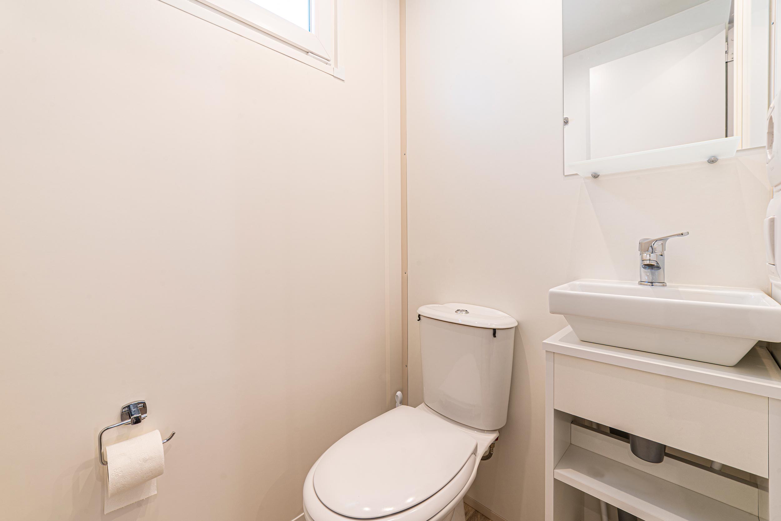 Es hat eine Fläche von ca. 32 m² und bietet Platz für maximal 6 Personen. Sie besteht aus einem Wohnzimmer mit Tisch und Stühlen, einer Küchenzeile mit einem Kühlschrank mit Gefrierfach, einem 4-Flammen-Kochfeld, einer Spüle, Töpfen und Pfannen sowie Geschirr. Der Schlafbereich besteht aus 3 Zimmern, eines mit einem Doppelbett und 2 mit 2 Einzelbetten. Die Unterkunft ist mit 1 kompletten Badezimmer mit WC, Dusche und Waschbecken und 1 Badezimmer mit WC und Waschbecken ausgestattet. Eine geräumige, überdachte Holzveranda mit Tisch und Stühlen ermöglicht es Ihnen, die für einen Urlaub in der Natur typische Atmosphäre im Freien zu genießen. Haustiere sind in einigen Einheiten erlaubt.