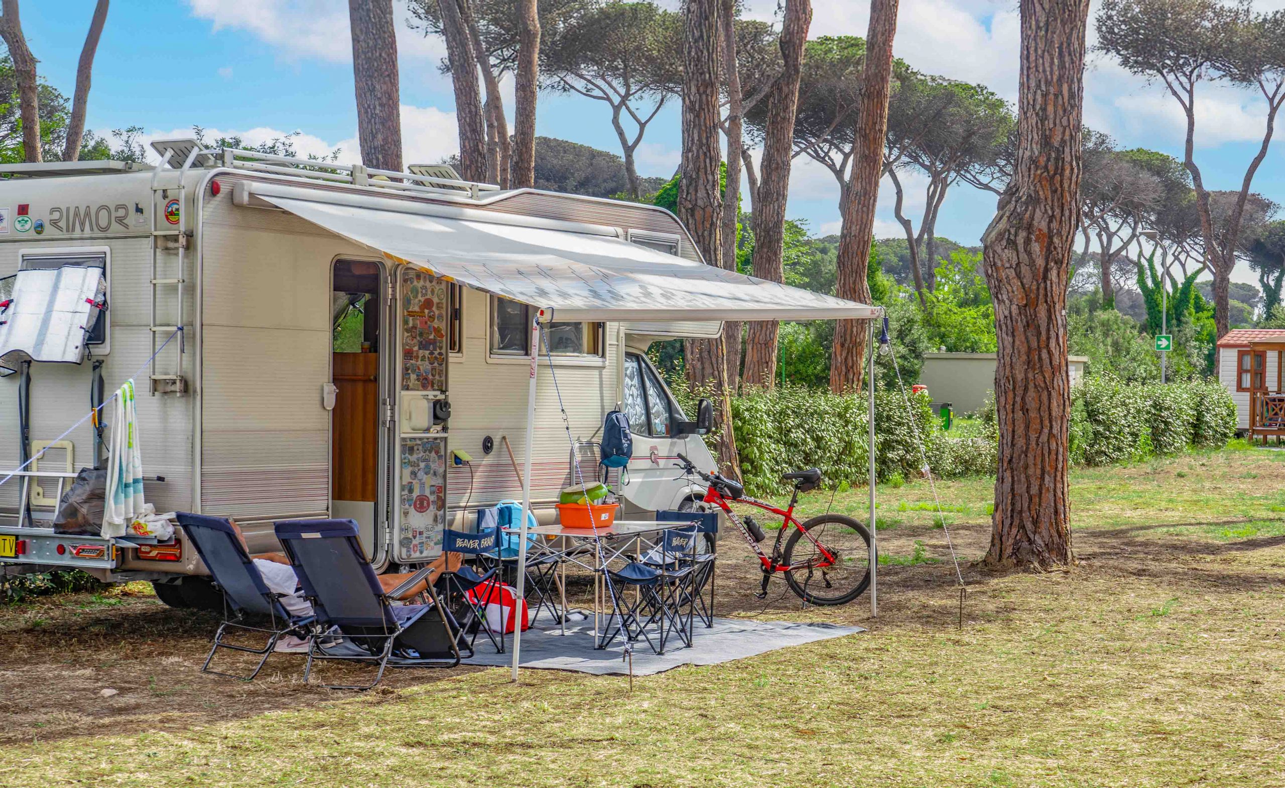 Die Stellplätze vom Typ ‚PINETAPLATZ‘ sind auf dem großen Gelände des Campingplatzes verteilt und liegen im Schatten des Pineta-Waldes von Castel Fusano. Sie sind für Wohnmobile und Wohnwagen mit bis zu sechs Personen geeignet. Alle Stellplätze verfügen über einen Stromanschluss mit bis zu 16 Ampere und einen Satelliten-TV-Anschluss, der im Preis inbegriffen ist. Nehmen Sie Ihren vierbeinigen Freund mit: einige Einheiten dieser Art sind haustierfreundlich.