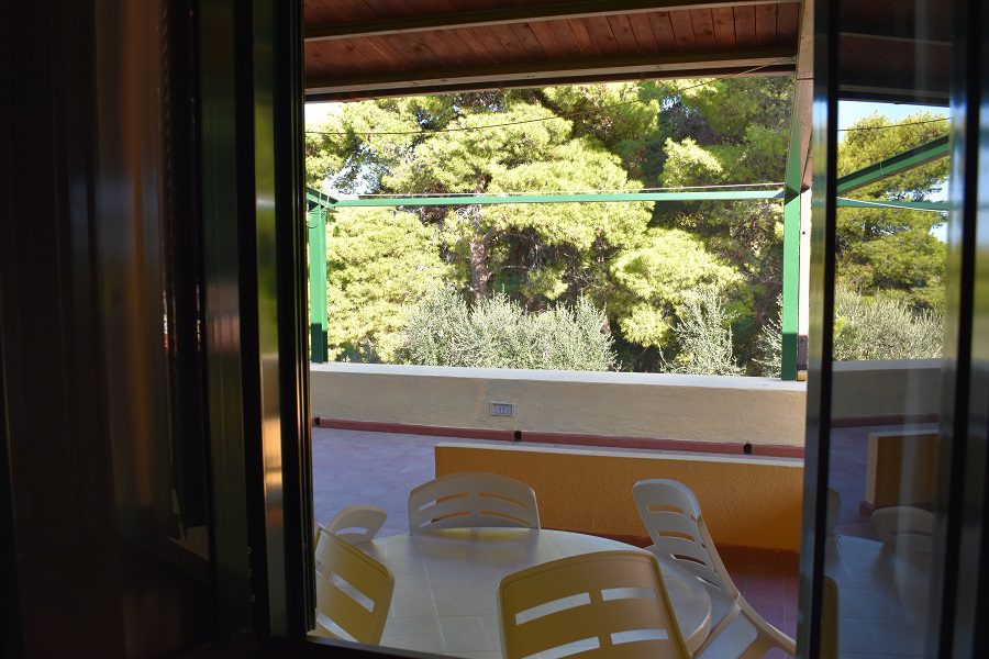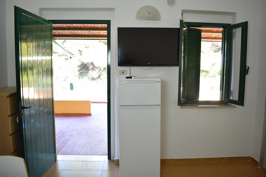 Die Unterkunft wird durch ein Badezimmer mit WC, Dusche, Bidet und Waschbecken sowie eine überdachte Außenterrasse mit Tisch und Stühlen vervollständigt, auf der Sie in Ruhe entspannen können.