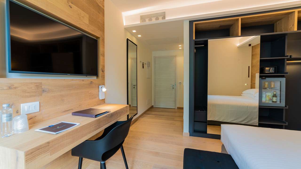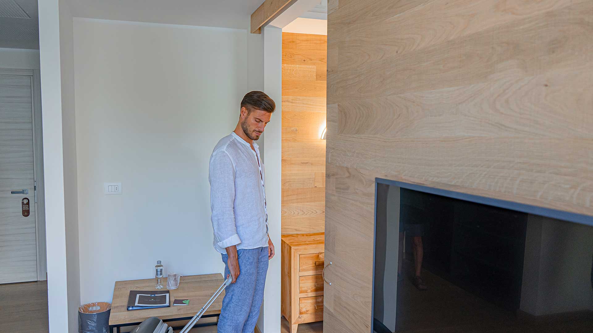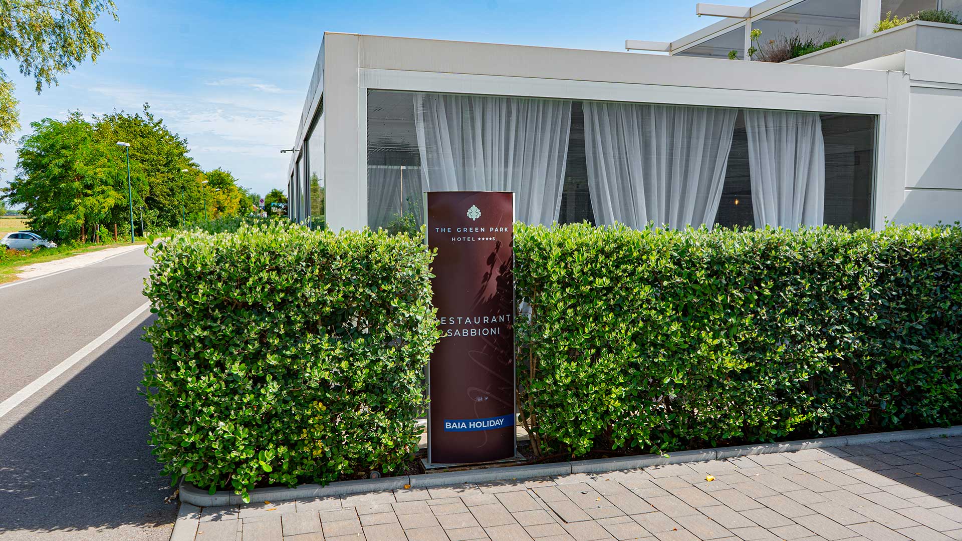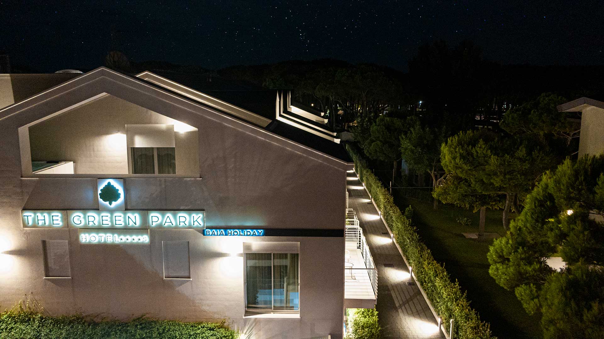 Eine klare und entschiedene Wahl der Materialien. Umweltfreundlich. In allen Räumen des Hotels herrscht die warme Farbe des Holzes vor. Die wunderbare Natur, die uns umgibt, hat auch im The Green Park Hotel ihren Platz gefunden. Ein Name, der seinen Ursprung genau dieser Philosophie der ökologischen Nachhaltigkeit verdankt. Seit mehr als 40 Jahren verfolgt die Baia Holiday Gruppe einen Diskurs der Aufwertung des Territoriums und der wunderschönen Orte, um die Natur, die uns beherbergt, zu respektieren und ihren vollen Schutz zu nutzen. Im Bau und in der Architektur des The Green Park Hotels haben diese Sorgfalt und Liebe ihren höchsten Ausdruck gefunden: Alle Materialien, die für den Bau des Hotels verwendet wurden, stammen von zertifizierten Unternehmen, die sich dem nachhaltigen Betrieb und Bau verschrieben haben. Warmes Holz für ein Gefühl von Wärme und Wohlbefinden. Grün, um die Natur zu erleben und zu spüren, die uns umgibt, die uns schützt und die wir anstreben. Gold für einen Hauch von Eleganz, der den Luxus der Einfachheit perfekt ergänzt.