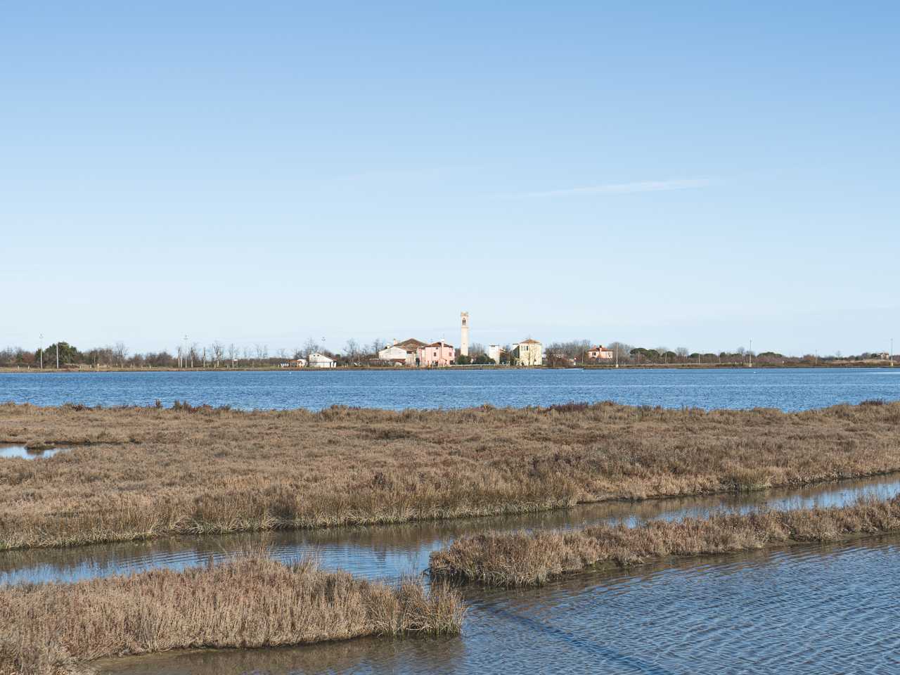 Land, Süßwasser und Salzwasser, drei Elemente, die, obwohl sie aufeinandertreffen, ein Gebiet mit einer Geschichte und Eigenschaften bilden, die in Italien einzigartig sind, das nördliche Litoral der Lagune von Venedig.
