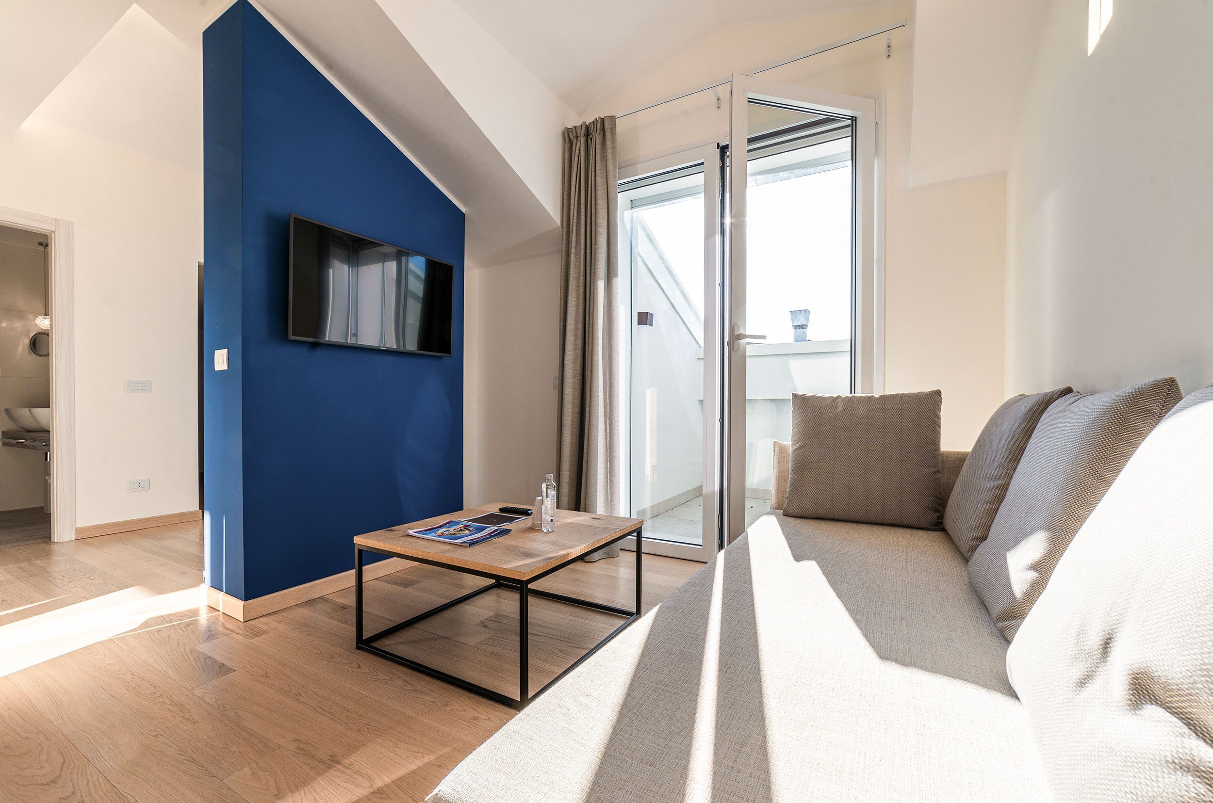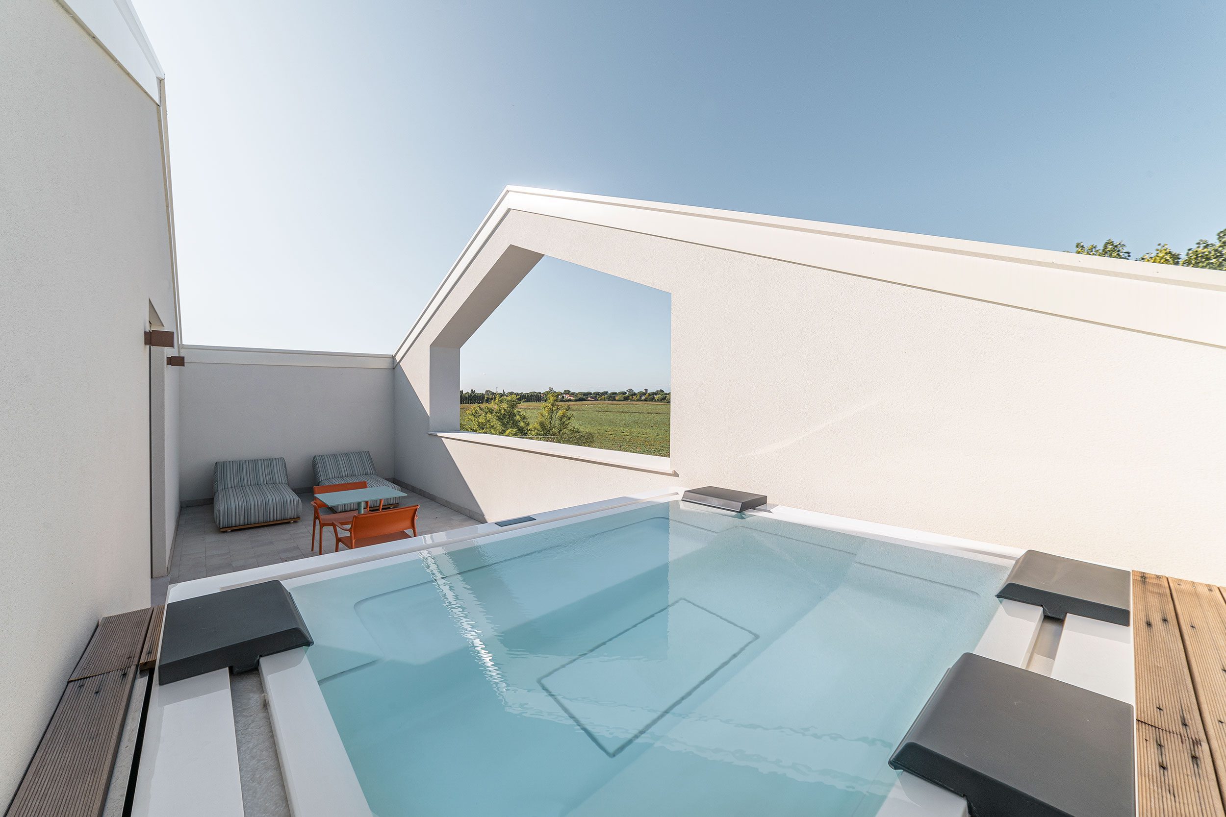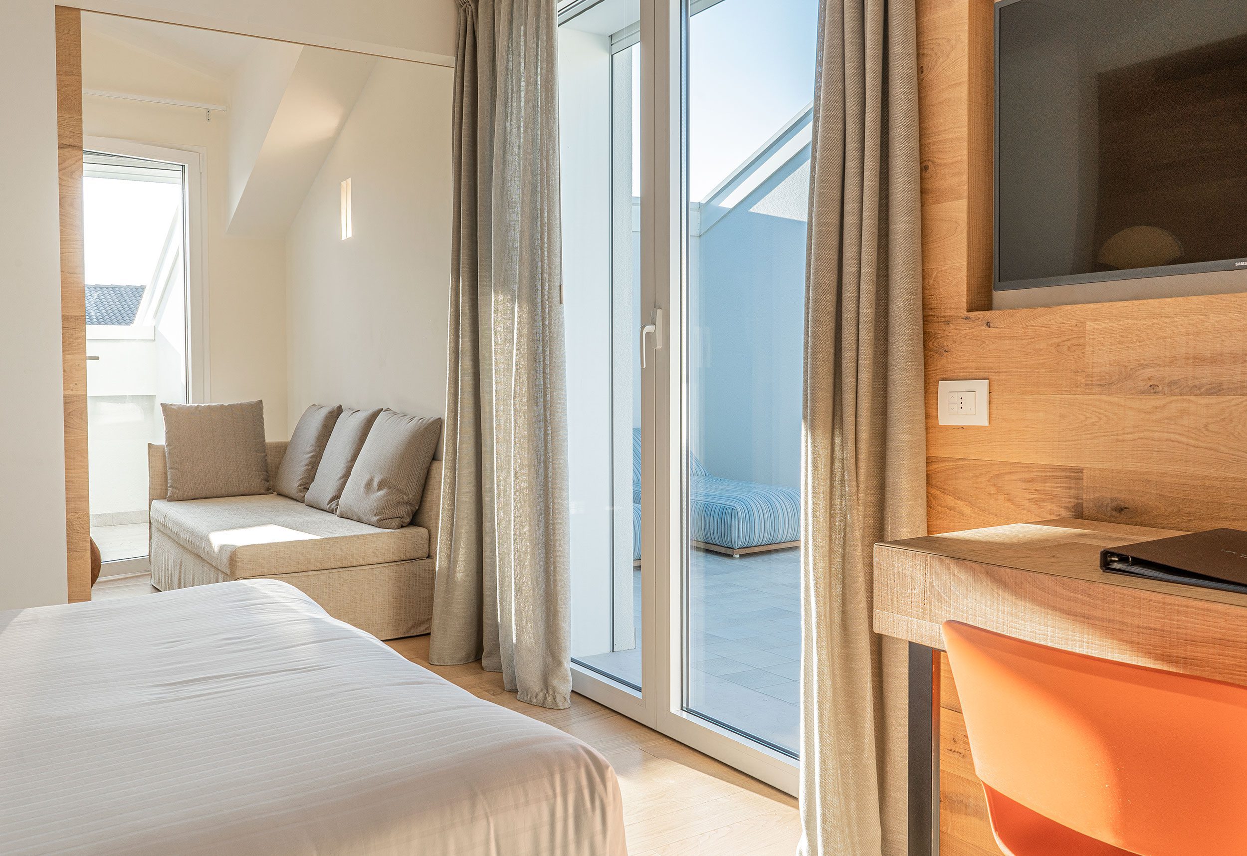 Die 50 qm große Executive Suite befindet sich im zweiten Stock und verfügt über zwei Schlafbereiche und zwei vollständige Badezimmer. Es ist mit Holzmöbeln und -böden, Kleiderschrank oder begehbarem Kleiderschrank, Telefon, Safe, Minibar, Doppelfrequenz-Wi-Fi-Service, 43“ LCD-Fernseher mit Satellitenkanälen und Klimaanlage ausgestattet. In den Badezimmern gibt es einen Haartrockner, ein Pflegeset und Strandtücher auf Anfrage. Es befindet sich im obersten Stockwerk und verfügt über eine Terrasse mit einem großen privaten Jacuzzi, um entspannende Momente im Kreise Ihrer Familie zu genießen.