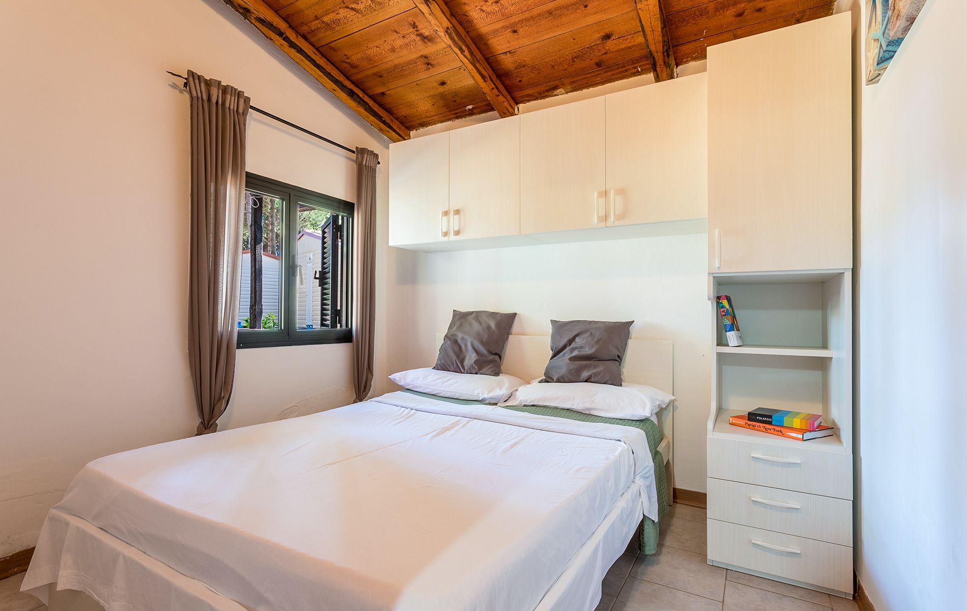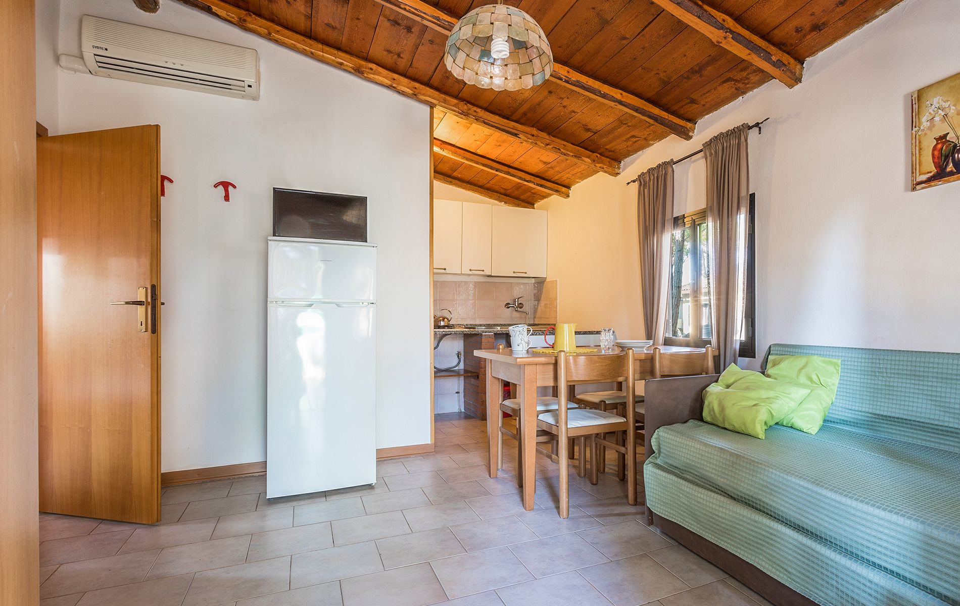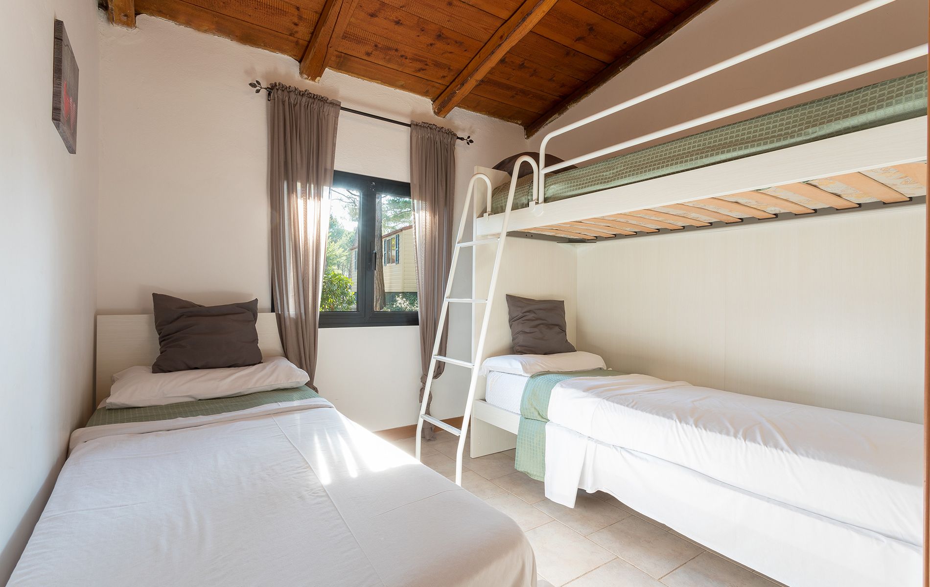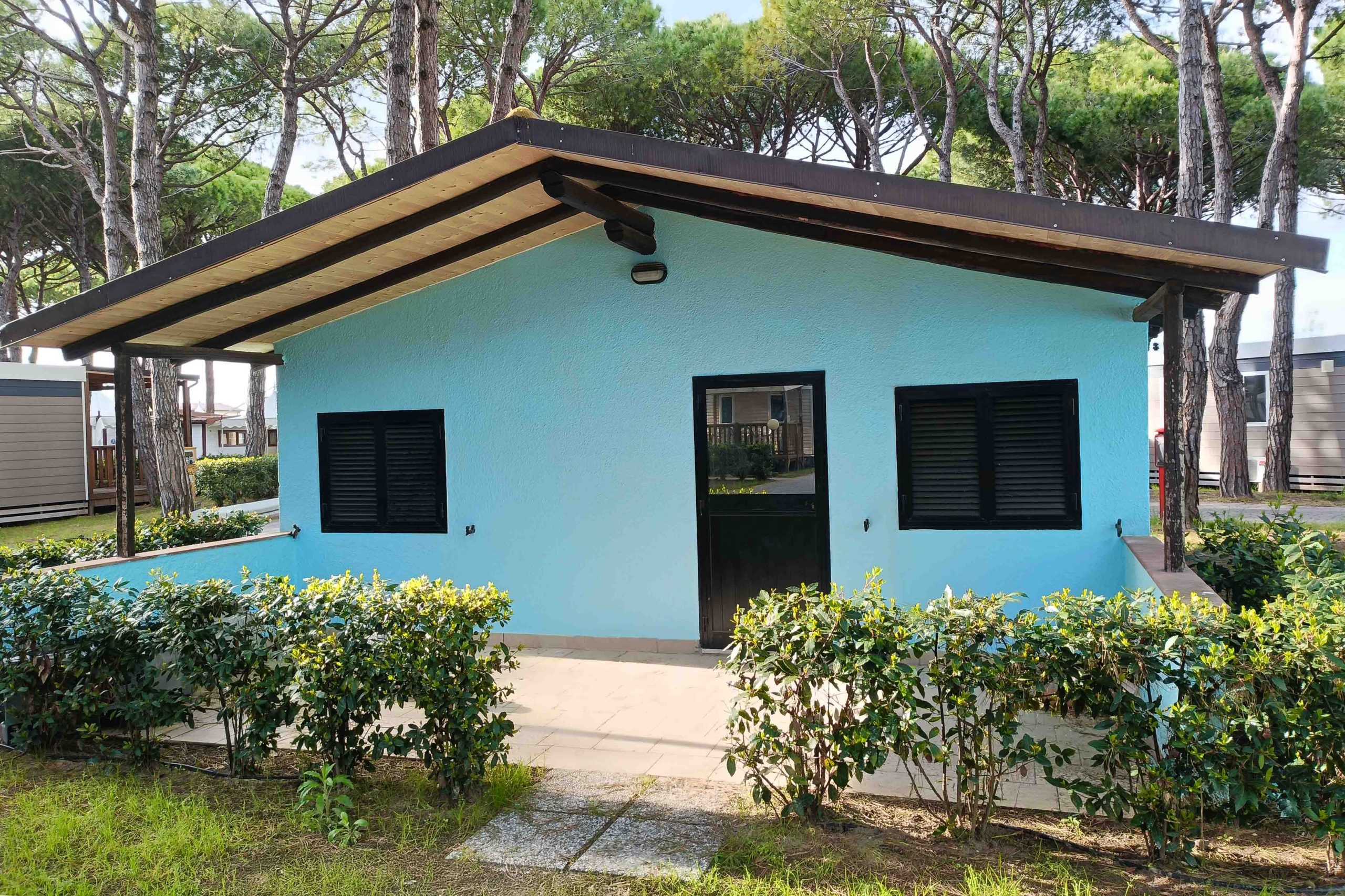 Perfect for all types of vacations, whether with family or friends, the brick Bungalow Venezia has an area of about 42 m² and can hold a maximum of 6 people. It consists of a living room with table and chairs, kitchenette equipped with column refrigerator complete with freezer, 4-burner stove, sink, cookware and dishes. The sleeping area consists of 2 rooms, one double and one room with 1 single bed and 1 bunk bed; there is also a sofa bed in the living room. The accommodation features 1 bathroom complete with shower, sink, and toilet. Outside, a porch equipped with table and chairs where you can enjoy moments of relaxation.
