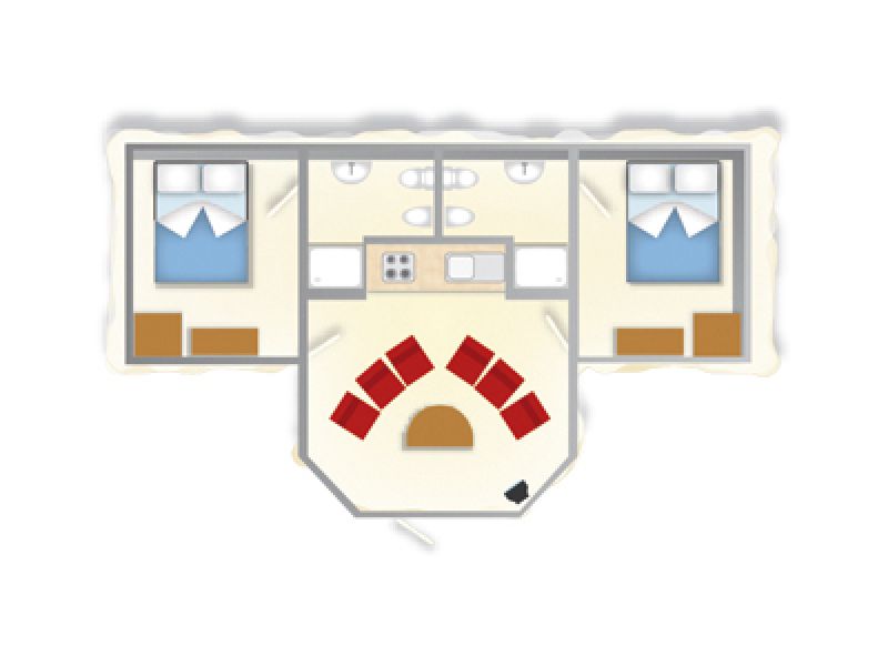Bright and cozy, the Baia Panoramic Mobile Home is about 30 m² in size and can accommodate up to 4 people. It consists of a large living room furnished with table and chairs, kitchenette equipped with refrigerator with icebox, 4-burner stove, sink, cookware and dishes. With its 2 double bedrooms, it is the perfect solution to accommodate 2 couples traveling together. Each of the 2 rooms features a self-contained bathroom complete with shower, sink, bidet and toilet. Outside, a gazebo with table and chairs where you can enjoy moments of relaxation .