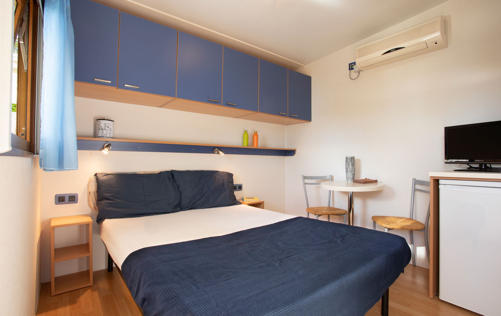 BLU RESORT solutions are 12-square-meter double rooms that offer comfort and convenience to those who want to spend a vacation surrounded by greenery. They are equipped with a full bathroom with toilet, shower, bidet and washbasin. A mini-bar is available for cooling drinks, and outside there is a pleasant veranda with umbrella, table and chairs where you can relax. As the rooms are not equipped with a kitchen, they can also be booked in combination with half-board or full-board packages.