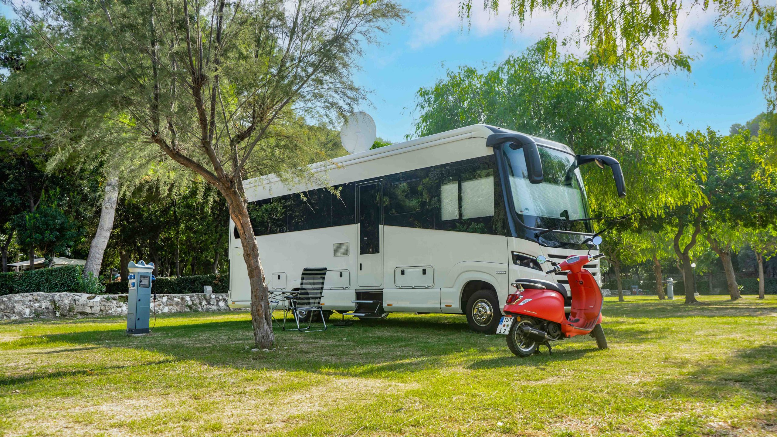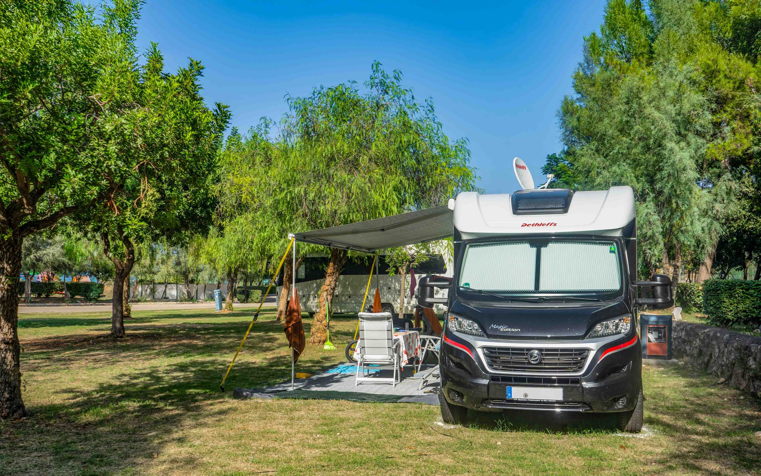 “PREMIUM PLUS” XL type pitches accommodate large motorhomes with a maximum number of 6 people; they are equipped with 6-amp electricity connection, extendable with an extra charge up to 16 amps; they are partially shaded and a short distance from the sea. Bring your four-legged friend with you: pitches of this type are pet-friendly.