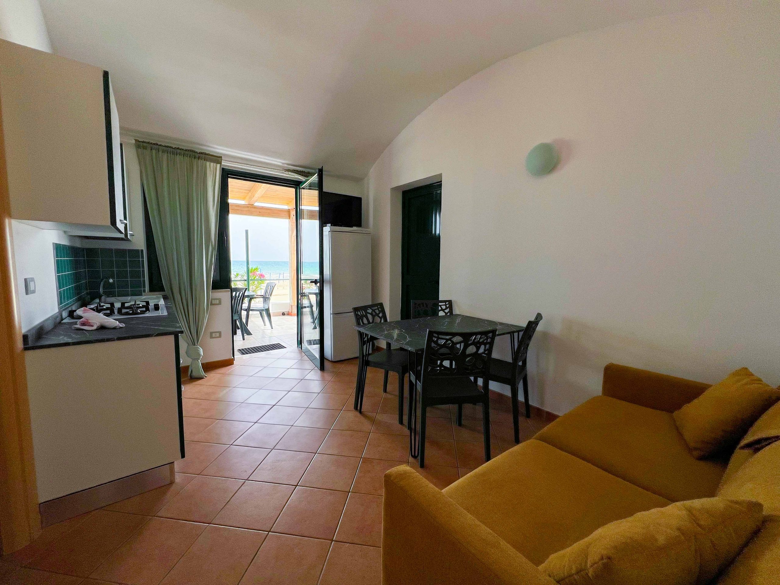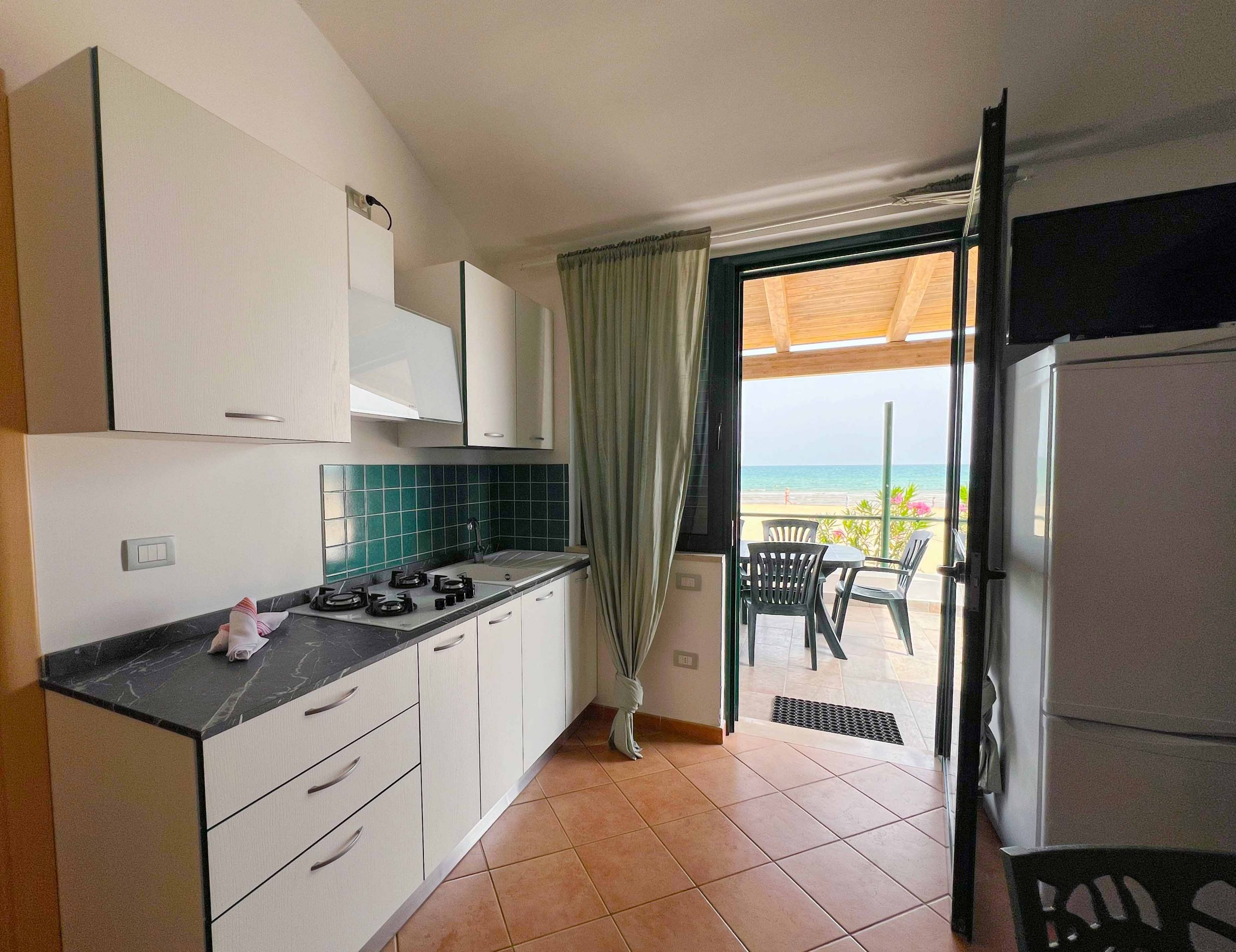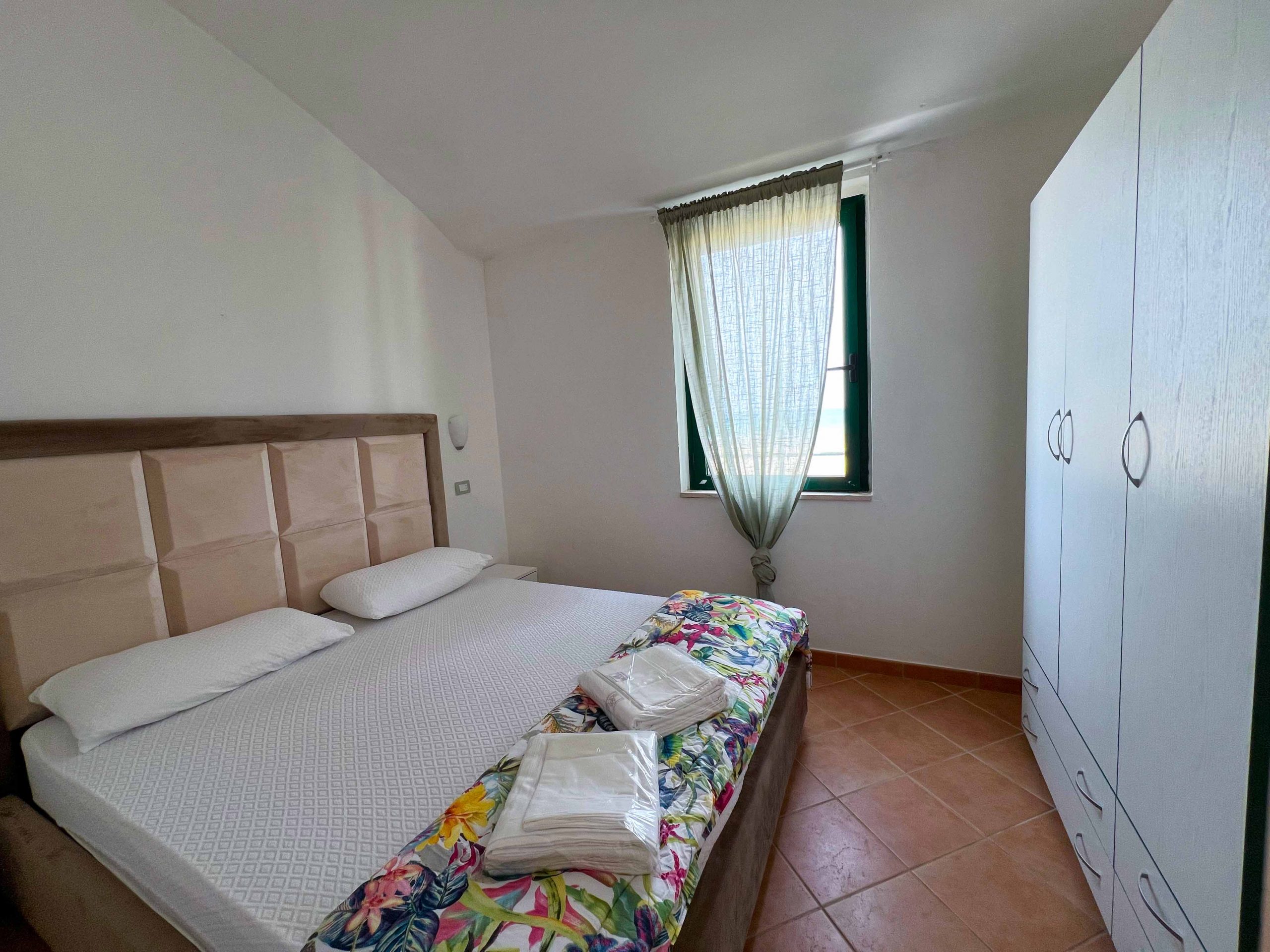 Completing the accommodation is a bathroom complete with toilet, shower, bidet and washbasin and a spacious covered outdoor terrace equipped with table, chairs and deck chairs where you can relax in peace while enjoying the wonderful sea view.