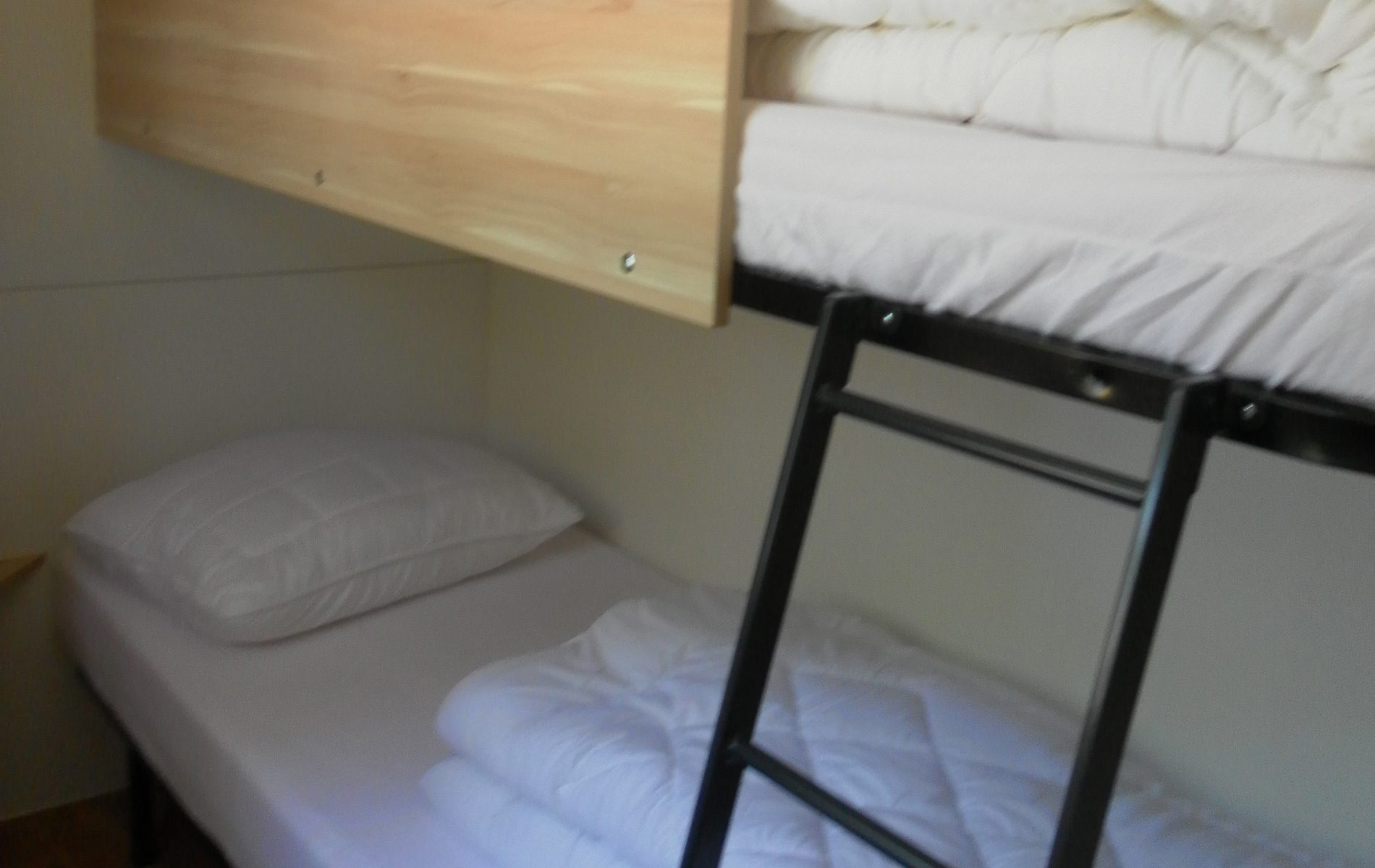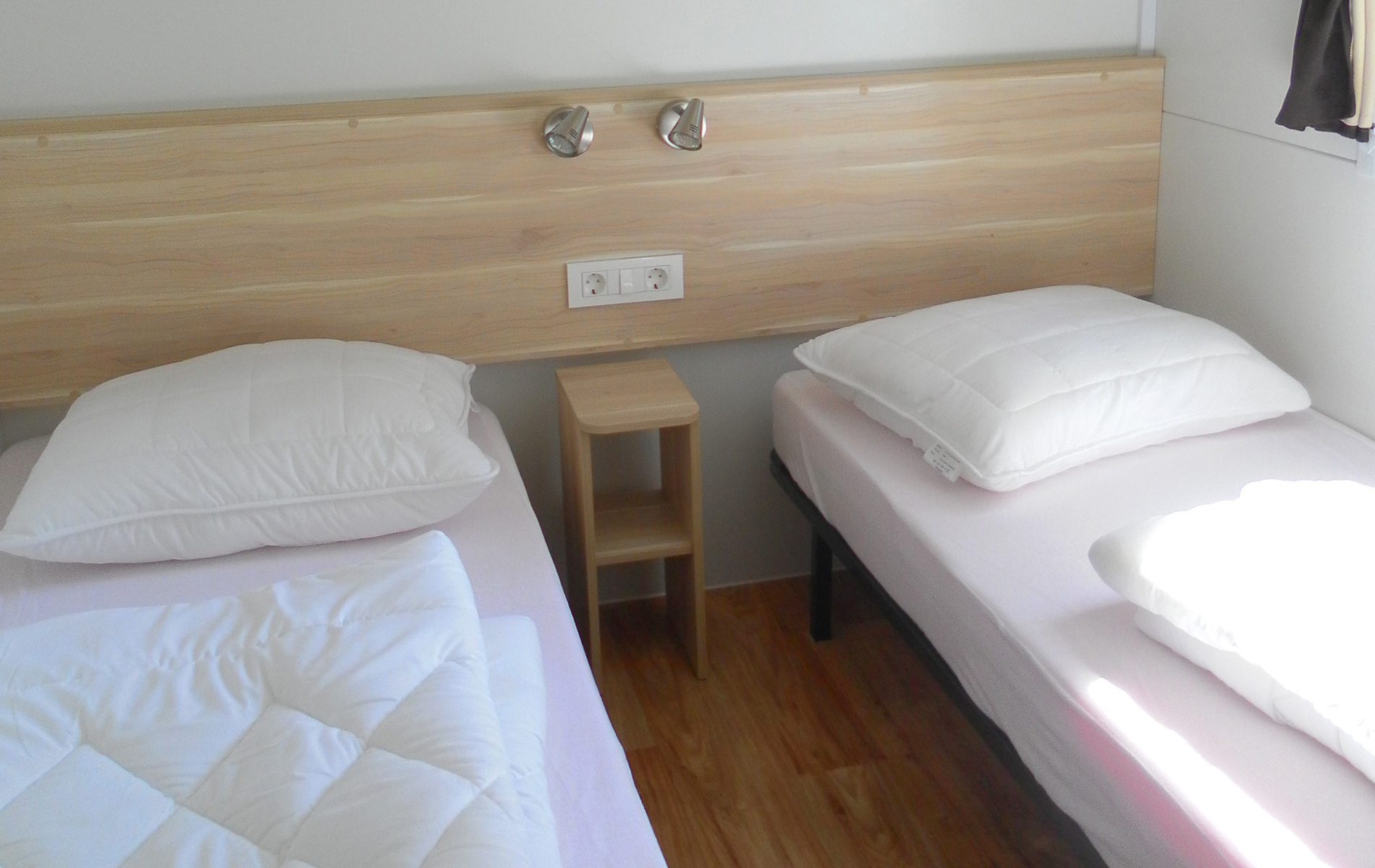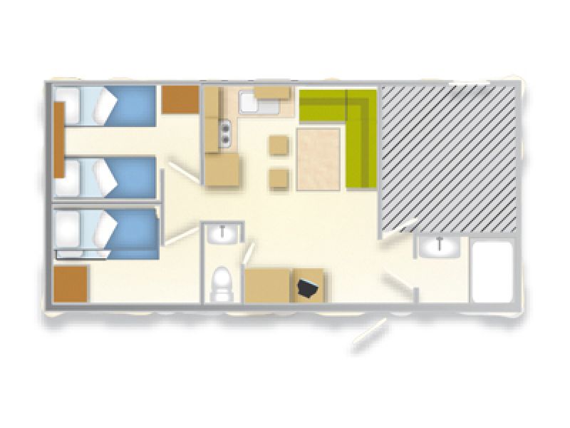 Ma on powierzchnię około 28 m² i może pomieścić maksymalnie 4 osoby. Składa się z salonu ze stołem i krzesłami, aneksu kuchennego wyposażonego w lodówkę, 4-palnikową kuchenkę, zlew, garnki i patelnie oraz naczynia. Część sypialna składa się z 2 pokoi, w tym jednego z 2 łóżkami pojedynczymi, które można połączyć, oraz jednego z łóżkiem piętrowym. Do dyspozycji Gości jest łazienka z umywalką i prysznicem oraz łazienka z toaletą i umywalką. Na zewnątrz znajduje się przestronna zadaszona drewniana weranda wyposażona w stół, krzesła i dwa leżaki.