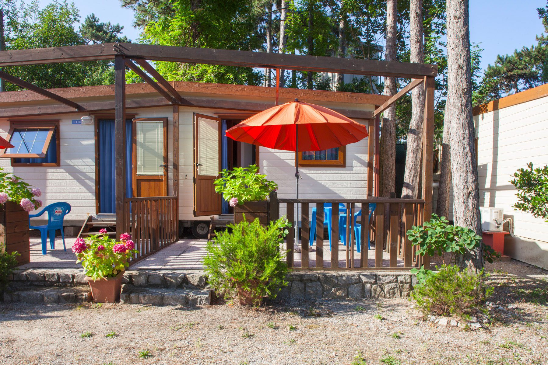 Rozwiązania Blu Resort to pokoje o powierzchni 15 m² składające się z łóżka podwójnego i łóżka pojedynczego, oferujące komfort i wygodę tym, którzy chcą spędzić wakacje w otoczeniu zieleni. Są one wyposażone w kompletną łazienkę z toaletą, prysznicem, bidetem i umywalką. Do dyspozycji Gości jest minibar z napojami chłodzącymi, a na zewnątrz znajduje się przyjemna weranda z parasolem, stołem i krzesłami, na której można się zrelaksować. Ponieważ pokoje nie dysponują kuchnią, można je również zarezerwować w połączeniu z pakietami z niepełnym lub pełnym wyżywieniem.