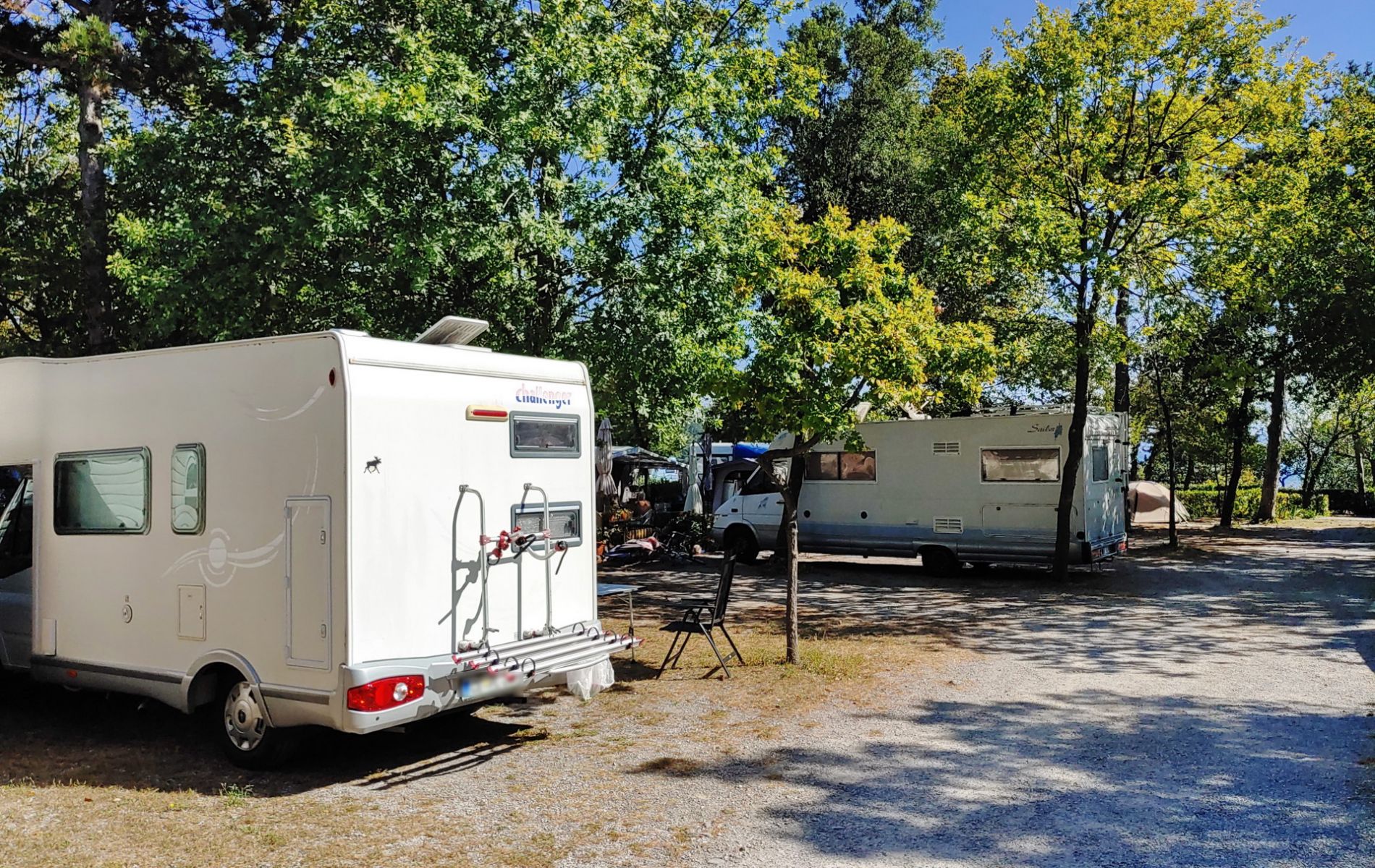 Stanowiska typu „PREMIUM” są częściowo zacienione przez sosnowy las. Są one odpowiednie dla kamperów, przyczep kempingowych i namiotów wszystkich rozmiarów do maksymalnie 6 osób. Wszystkie są wyposażone w przyłącze elektryczne o natężeniu od 6 amperów i wodę. Zabierz ze sobą swojego czworonożnego przyjaciela: niektóre jednostki tego typu są przyjazne dla zwierząt.