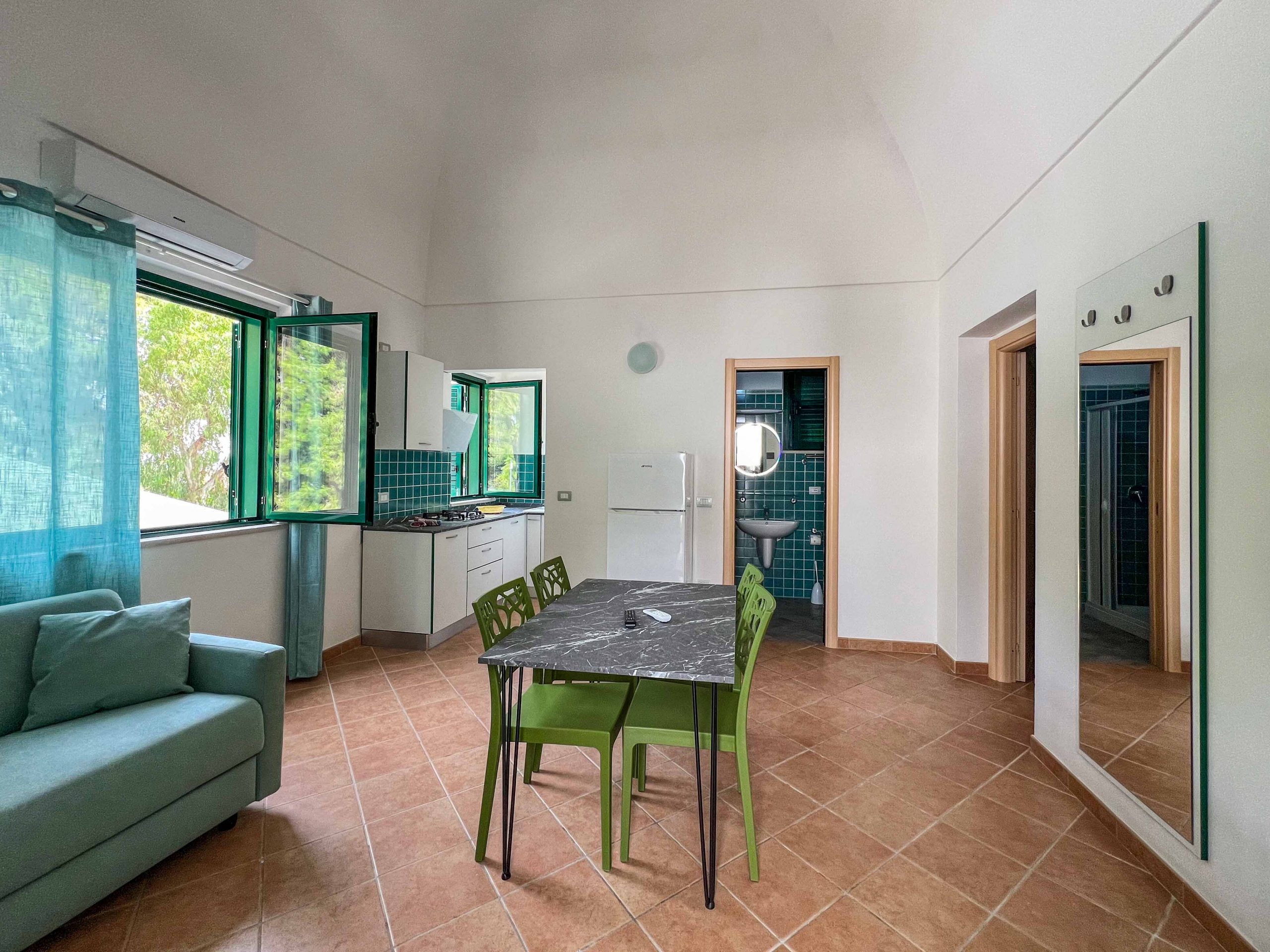 - Jeden pokój z łóżkiem podwójnym i rozkładaną sofą w części dziennej.