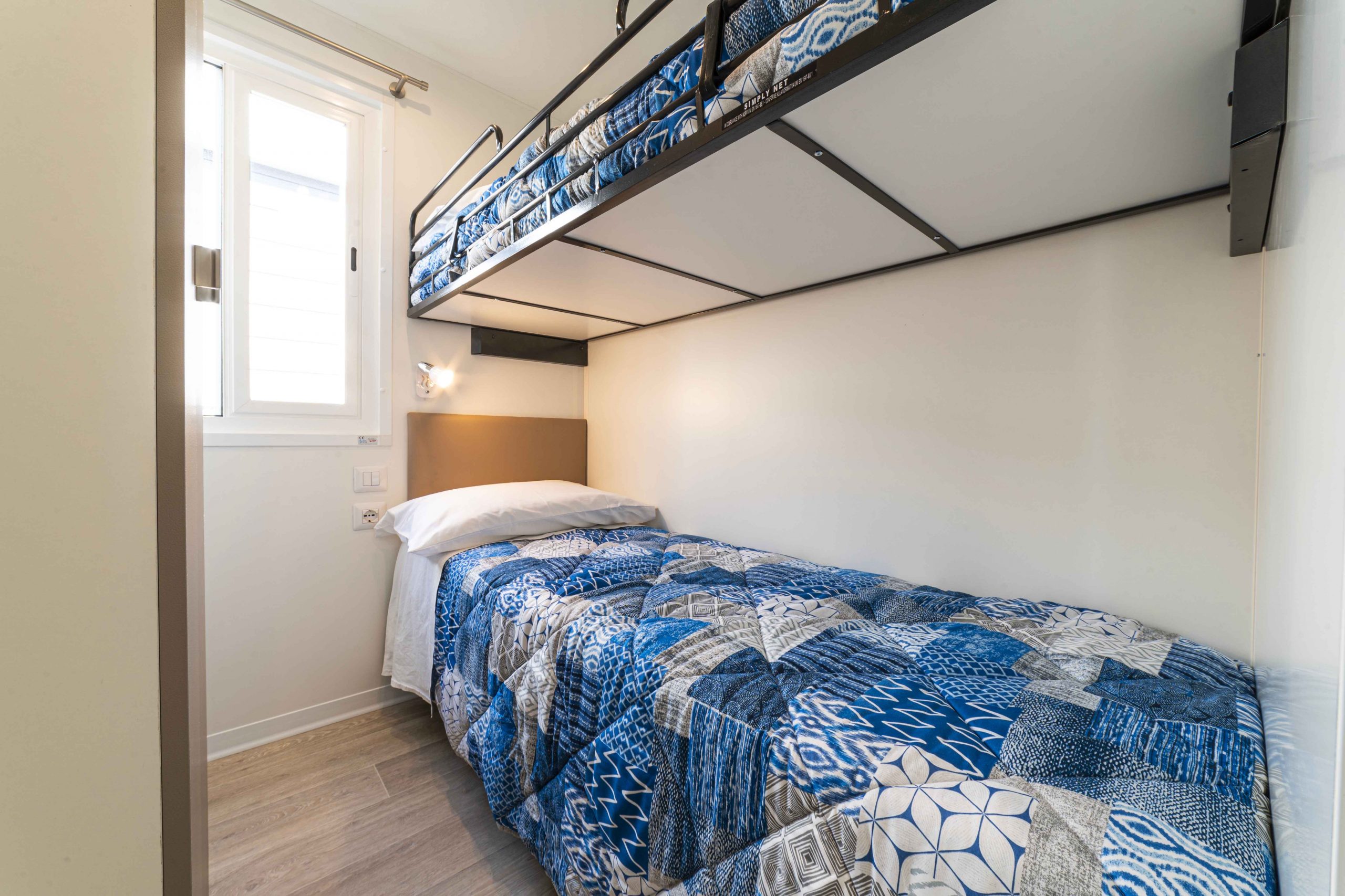 Duża część sypialna składa się z trzech pokoi: jednego dwuosobowego i dwóch pokoi z łóżkami piętrowymi.