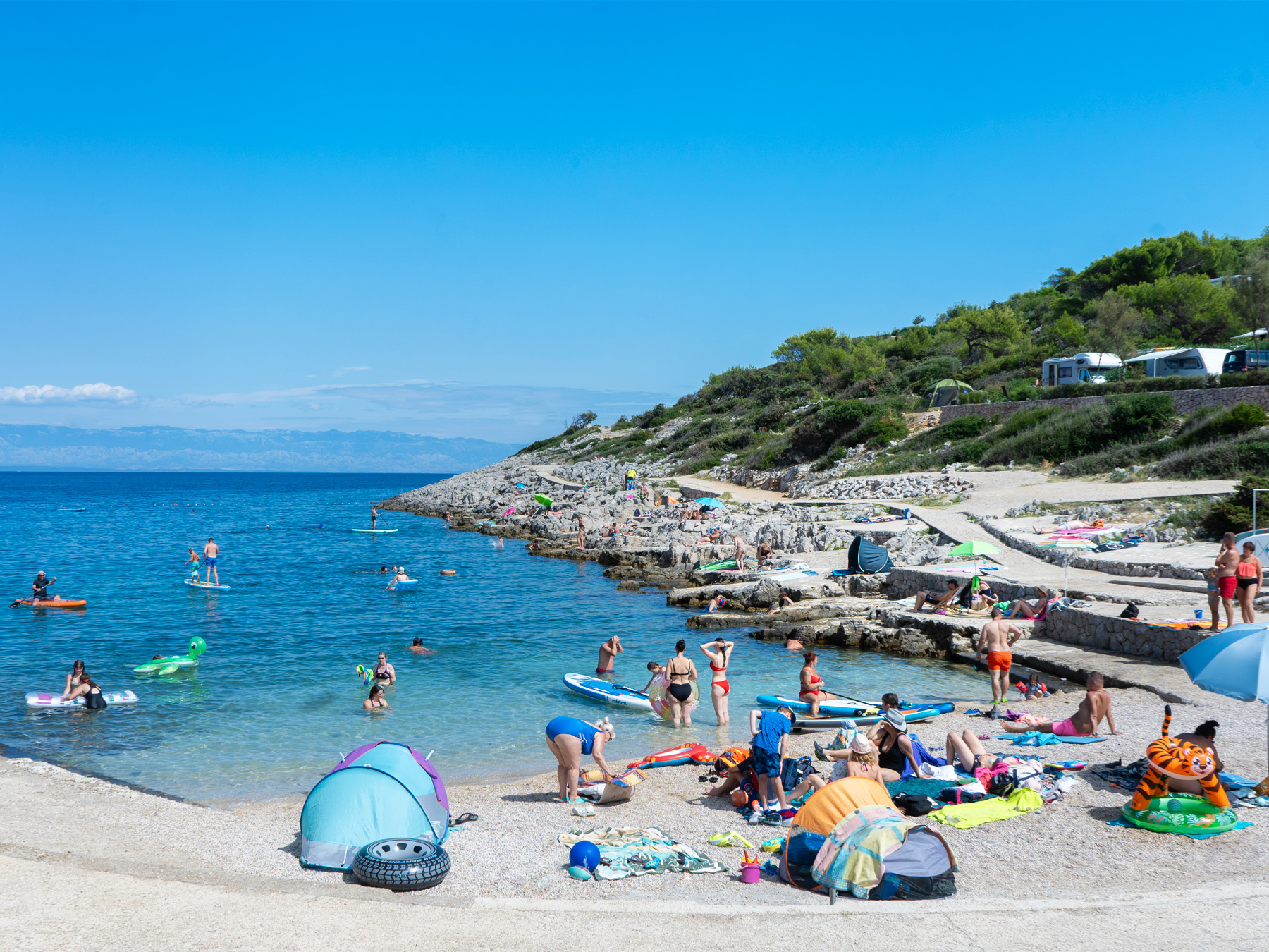 Il Camping Village Poljana, è circondato dal mare sui due lati. Da una parte si trova l’incantevole baia sul mare turchese e limpido, in tipica ghiaietta e comfort speciali come i gazebo con lettini lounge sulle tradizionali terrazze croate (a noleggio). Dall’altro lato la Marina privata, con possibilità di noleggio e attracco barche, un servizio esclusivo che permette ai nostri Ospiti di partire all’avventura e alla scoperta dei più scenografici e nascosti angoli dell’Arcipelago del Quarnero. Eletta seconda “Best Travel Destination 2018”, l’Isola di Lussino cela una meraviglia che innamora a prima vista. Il profumo intenso dei fiori e della natura di Losinj, le lunghissime giornate di sole, le ombreggiate oasi ricche di piante e verdeggiante vegetazione.